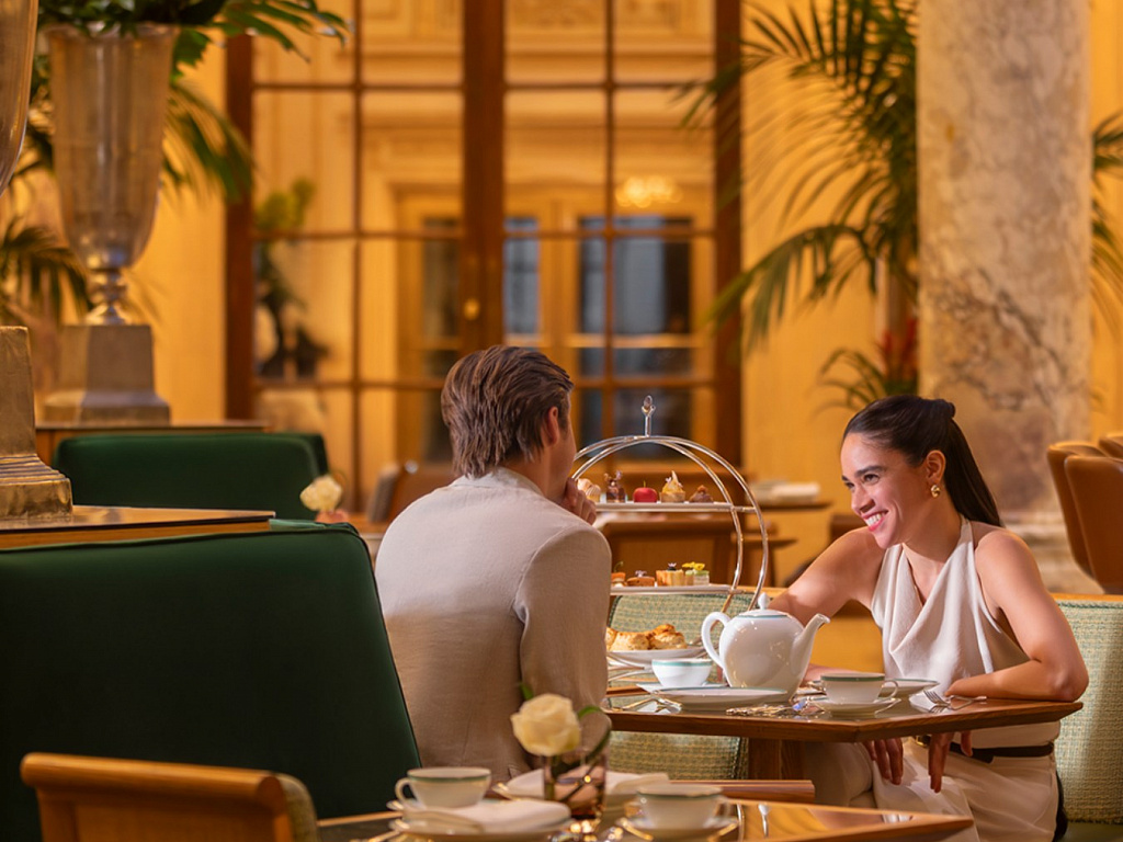 Не чаепитие, а постановка в духе старого Голливуда — с блеском люстр, звоном фарфора и идеальной световой партитурой. В Palm Court чай подают под куполами, где отражается город, а фарфор Bernardaud, созданный специально для отеля, звенит в унисон с бокалами Veuve Clicquot. На этажерке — миниатюрные лобстер-роллы, сконы с лимонным курдом и блины с икрой. Все здесь про жест, ритуал и удовольствие.