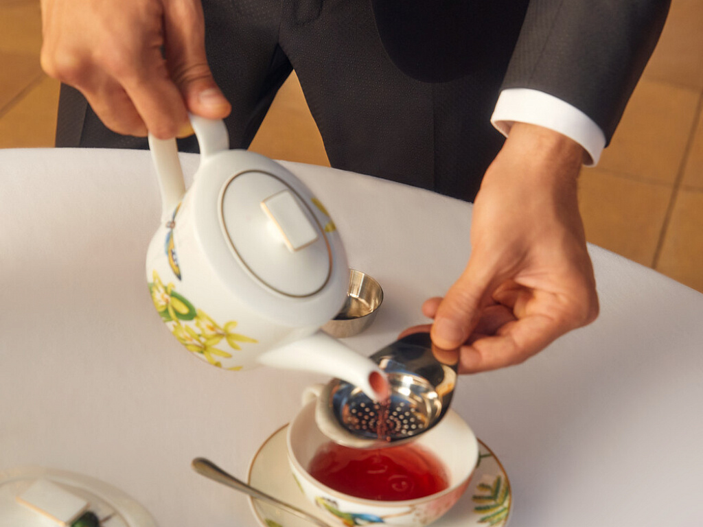Не заглянуть сюда было бы преступлением: правительство Сингапура не зря присвоило отелю статус национального памятника. Чай здесь подают в Grand Lobby: высокие потолки, гигантская люстра, арфист — акустика старого света работает безупречно. Classic Afternoon Tea сервируют на трёхъярусной серебряной этажерке: пять сэндвичей, десерты от шефа-кондитера и три вида сконов — классические, соленые и с изюмом. В чашках — листовые чаи или фирменный кофе. Шампанское — по желанию, но вы же понимаете.