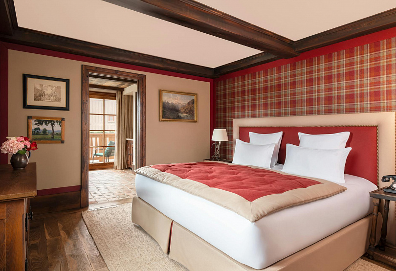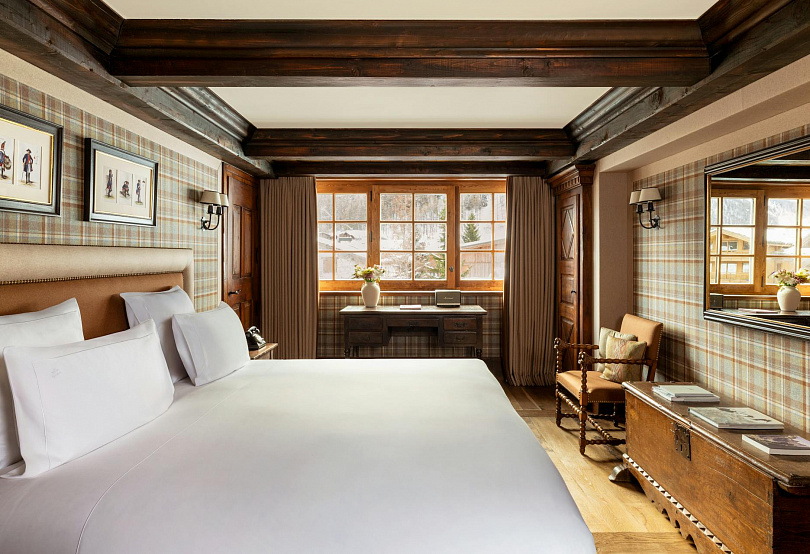 Внутри — 15 000 антикварных предметов, датируемых XV веком, стены украшены репродукциями картина в стиле Вермеера, а персонал носит костюмы савойских охотников, добавляя исторический колорит. Кровати в номерах неприлично больших размеров, телевизоры скрыты в позолоченных зеркалах, а в ванных комнатах дизайнерская сантехника и японские туалеты. Европейские курорты задают тон отелям по всему миру, но во Французских Альпах этот отель выгодно выделяется на фоне остальных.