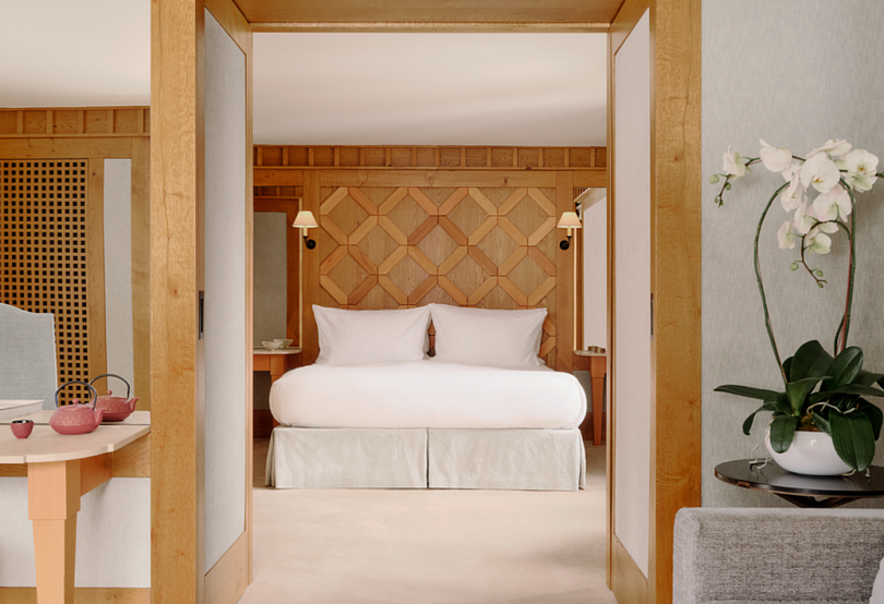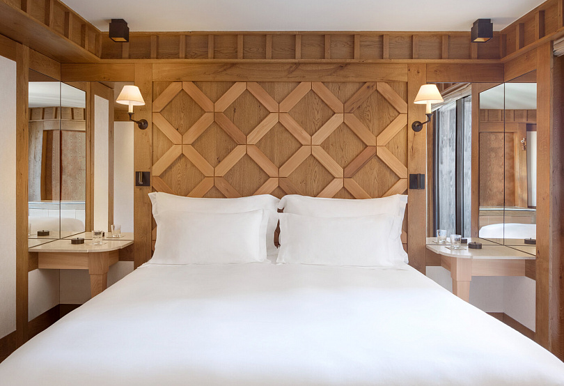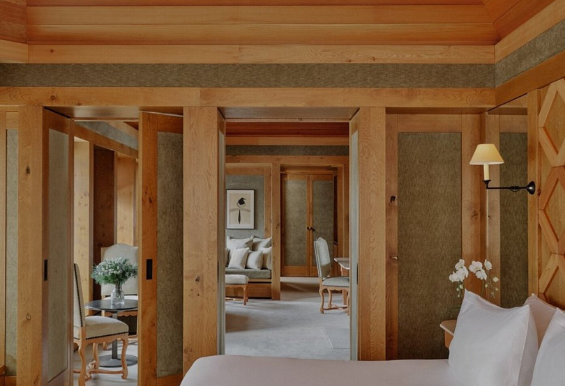 Впрочем, сходство со всем французским заканчивается, стоит только зайти внутрь: единственное, что напомнит обстановку классических альпийских отелей — стены и потолки из благородного кедра (и, конечно, виды на заснеженные склоны за окном). В остальном отель, как и любой курорт Aman, по-азиатски минималистичен и выдержан: в лобби стоит вековое дерево бонсай, на столах — орхидеи, в номерах — только то, что необходимо.