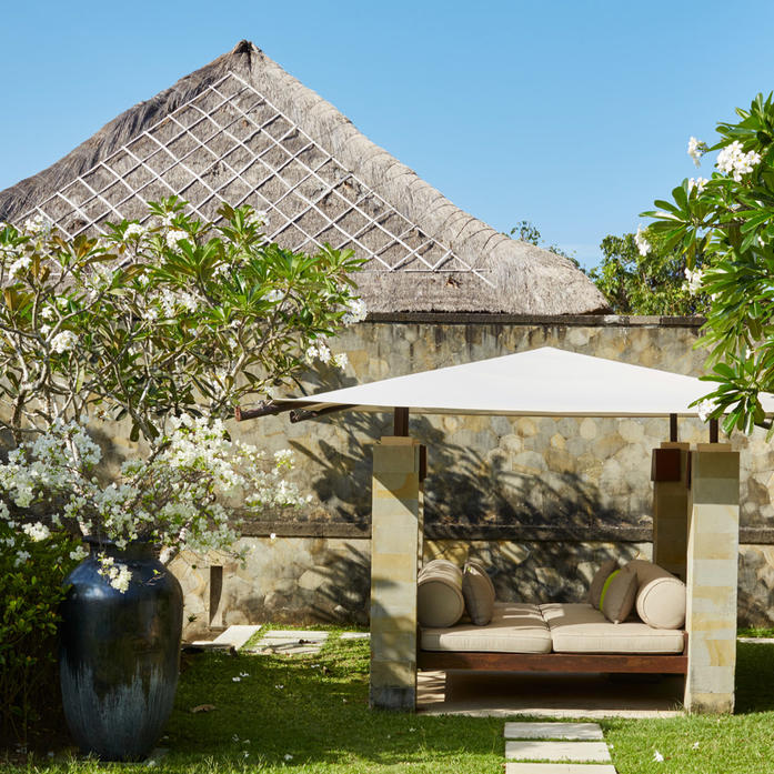 Вилла с пятью спальнями и видом на сады и океан. Бассейн, обеденная и лаунж-зона на открытом воздухе. Библиотека, кинотеатр, гардеробная. Ванная комната с двумя раковинами, глубокой ванной и тропическим душем. Кровати king-size.