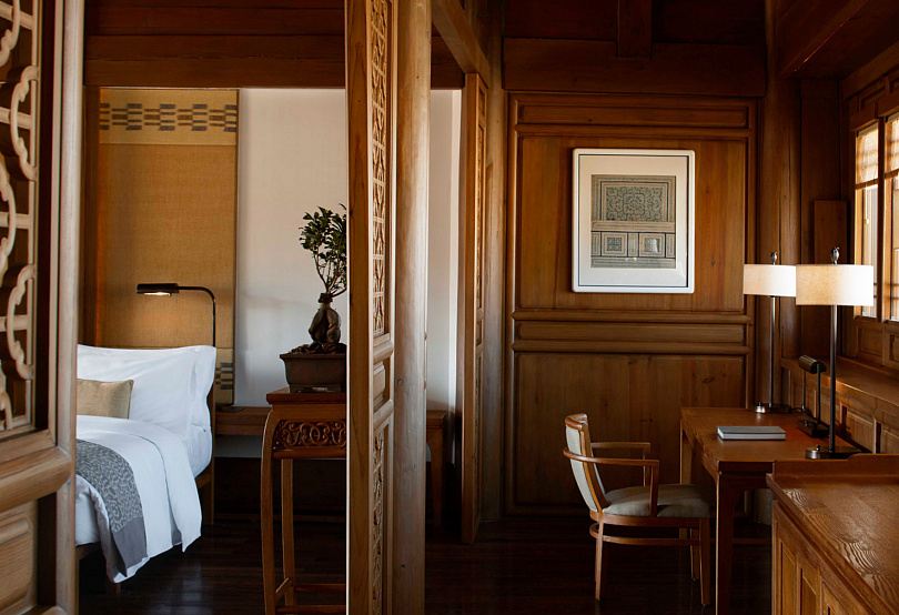 Лицзянь — город в провинции Юньнань, представляющий собой одновременно памятник культурному наследию региона и место несравненной природной красоты. Отель не мог выбрать места удачнее: возвышаясь на древним Старым городом с мощеными улицами и многочисленными архитектурными шедеврами, он, как еще один из них, идеально вписывается в картину. Виды из многих номеров недостаточно назвать красивыми — после первой ночи они кажутся жизненно необходимым. Лучшие открываются из чайного домика, где подают как китайские, так и западные сорта.