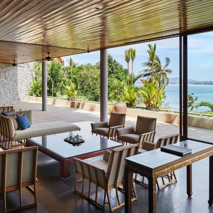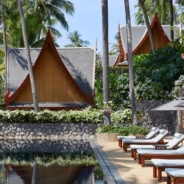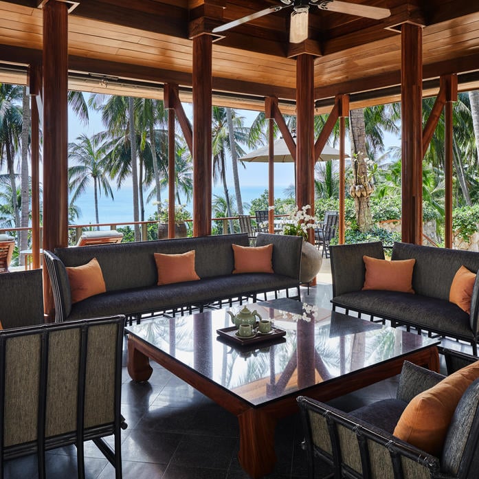 Вилла с пятью спальнями, бассейном, обеденными и лаунж-зонами как внутри, так и на открытом воздухе. Кровати king-size в каждой спальне. Есть кухня и бар.