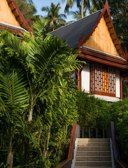 Вилла с террасой и одной спальней в окружении садов. Кровать king-size. Лаунж-зона на открытом воздухе. Просторная ванная комната с глубокой ванной и двумя раковинами.