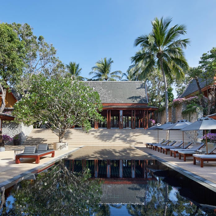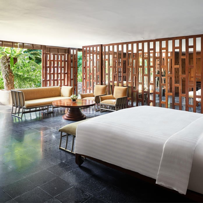 Вилла в окружении садов с шестью спальнями, бассейном, обеденными и лаунж-зонами как внутри, так и на открытом воздухе. Кровати king-size в каждой спальне. Есть кухня и бар.