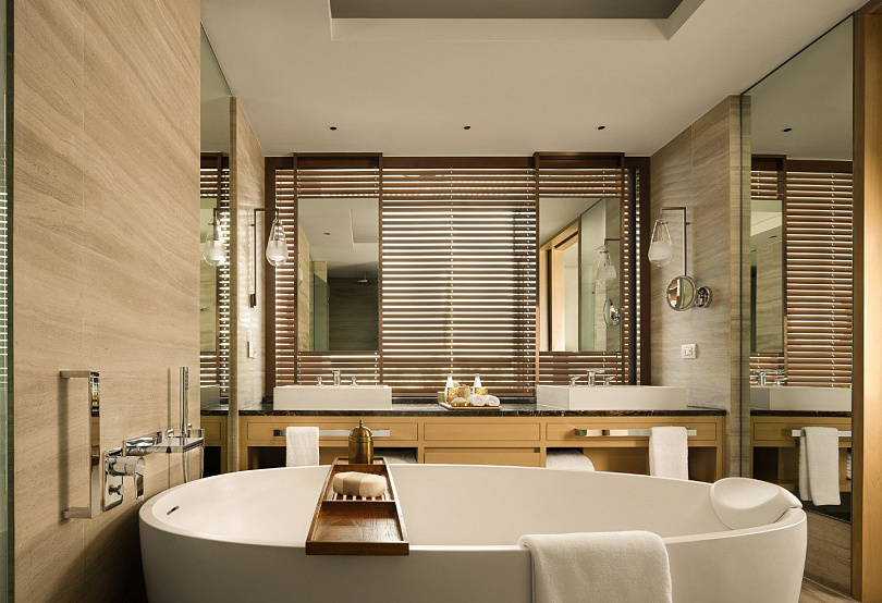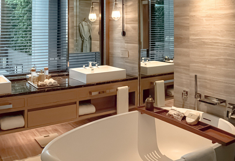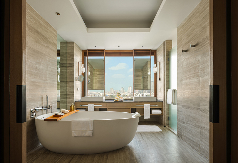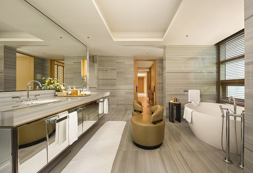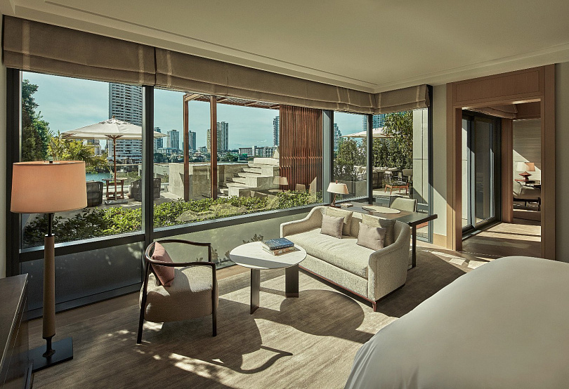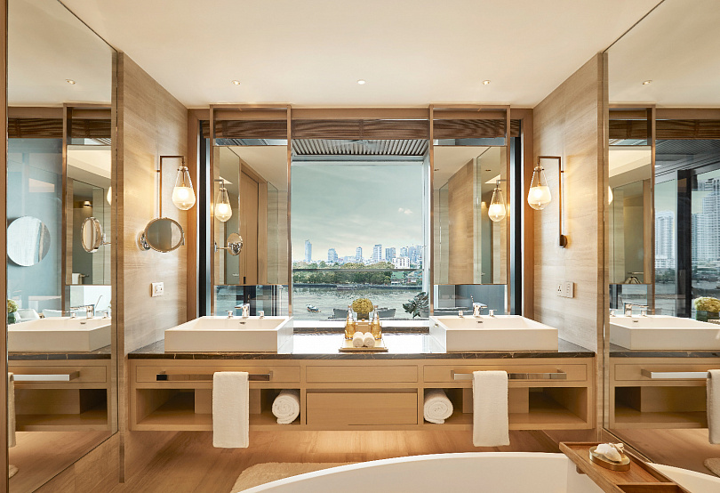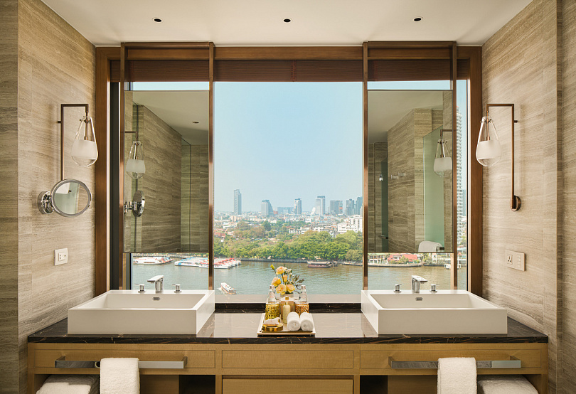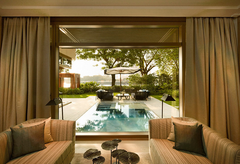 Кричащего дизайна и вычурных фасадов тут не найти: только приглушенные тона, изобилие мрамора, настраивающий на созерцание вид на реку и роскошные ванные комнаты в каждом номере.