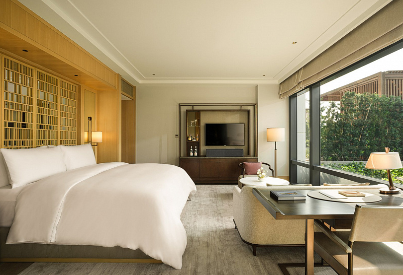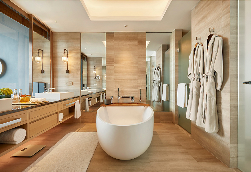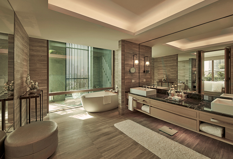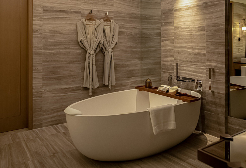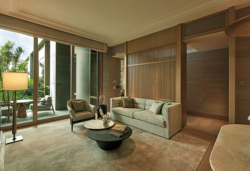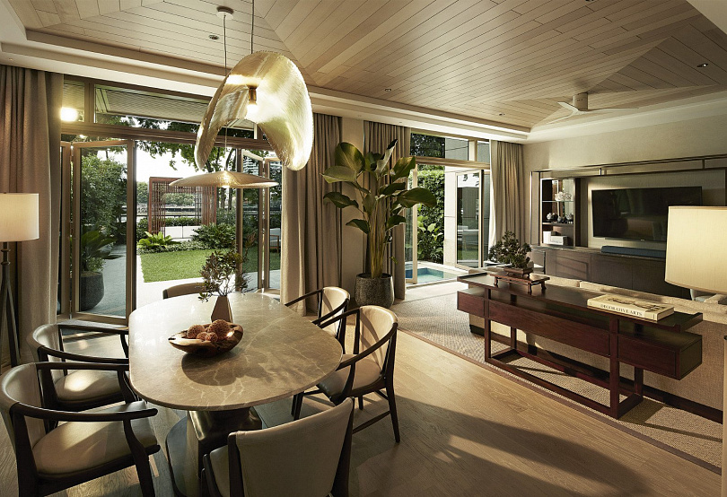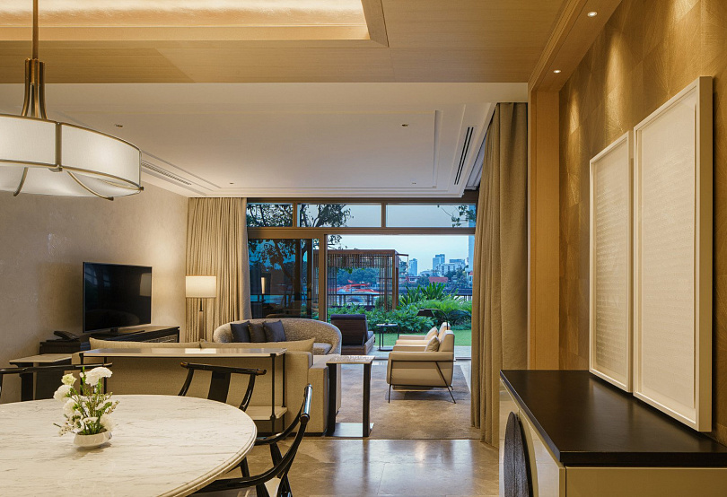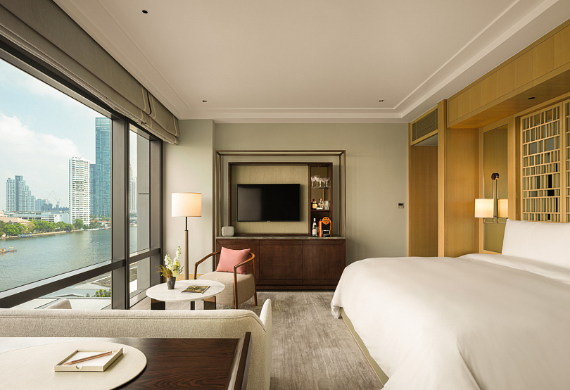 Кричащего дизайна и вычурных фасадов тут не найти: только приглушенные тона, изобилие мрамора, настраивающий на созерцание вид на реку и роскошные ванные комнаты в каждом номере.