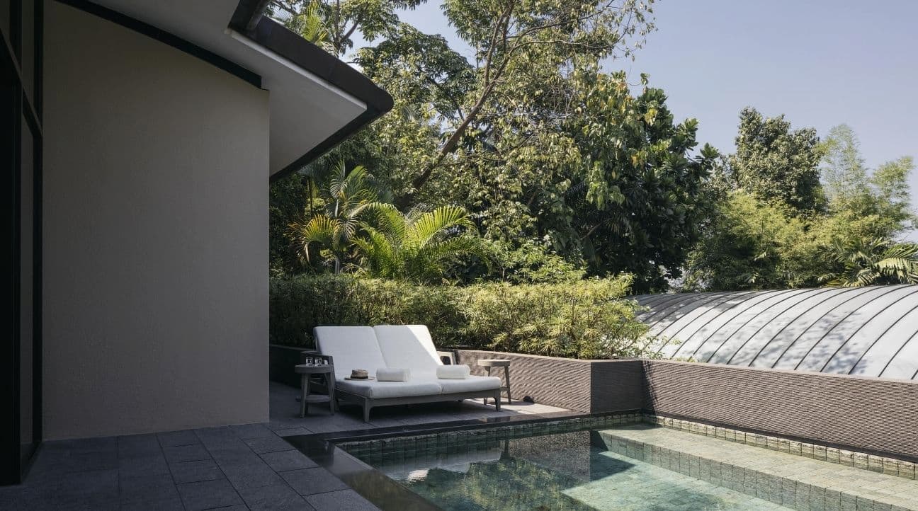 Вилла с одной спальней, меблированной террасой и бассейном. Отдельная гостиная, кровать в спальне размера king-size. Большая гардеробная. Отдельный душ и глубокая ванна в ванной комнате.