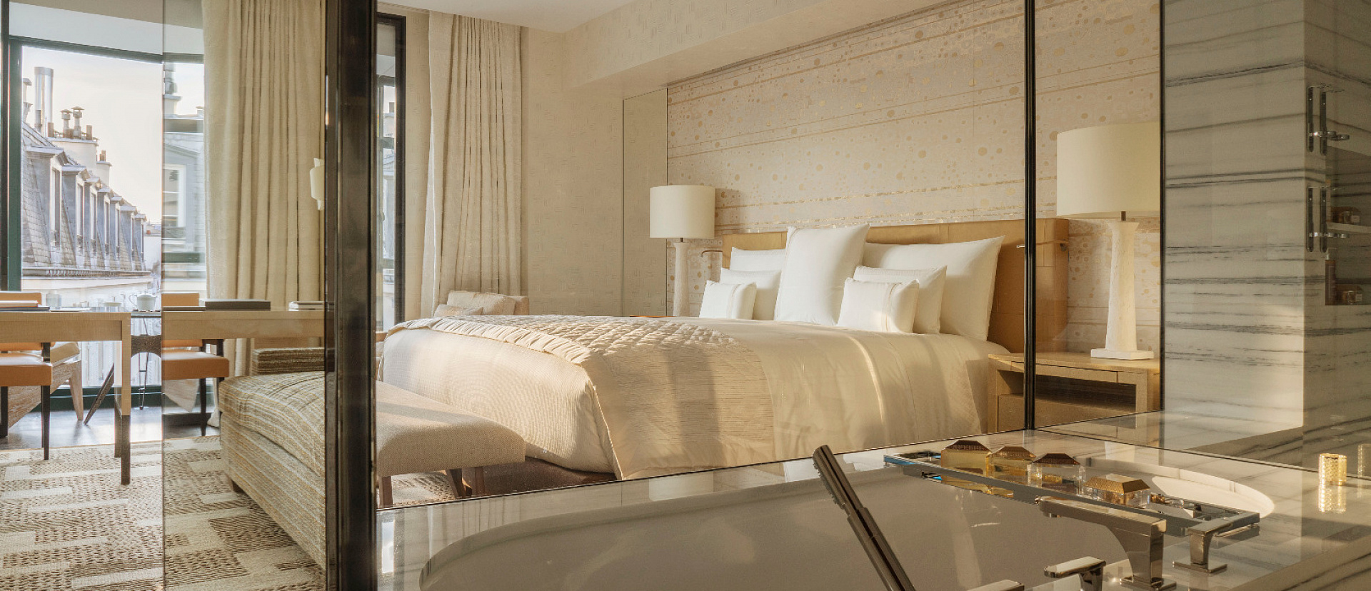 Номер с видом на колоннаду Лувра и отдельной гардеробной комнатой. Глубокая ванна и душ с хаммамом в ванной комнате, гостевой туалет. Можно объединить с Louvre Deluxe Room или Balcony Deluxe Room.