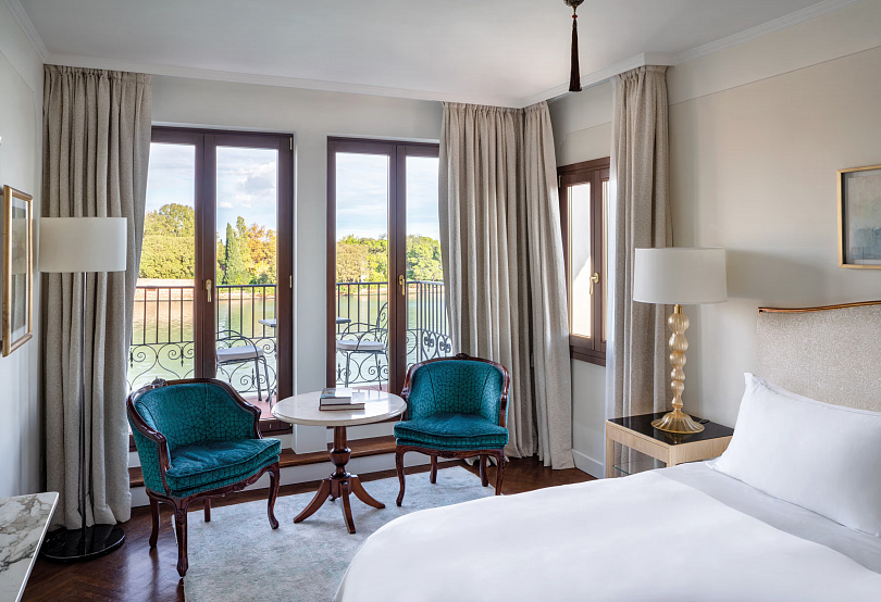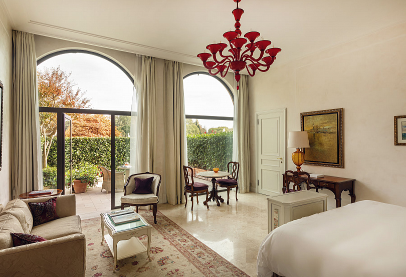 Несмотря на удаленность от города, здесь удалось сохранить его дух: у вас по-прежнему будет возможность провести ночь в многовековом здании (пристройка отеля датируется XV веком) с собственным дворецким, прогуляться на лодке (мы уже упоминали собственный причал?) и в полной мере ощутить итальянскую dolce vita, выйдя на балкон с чашкой эспрессо и видом на канал.