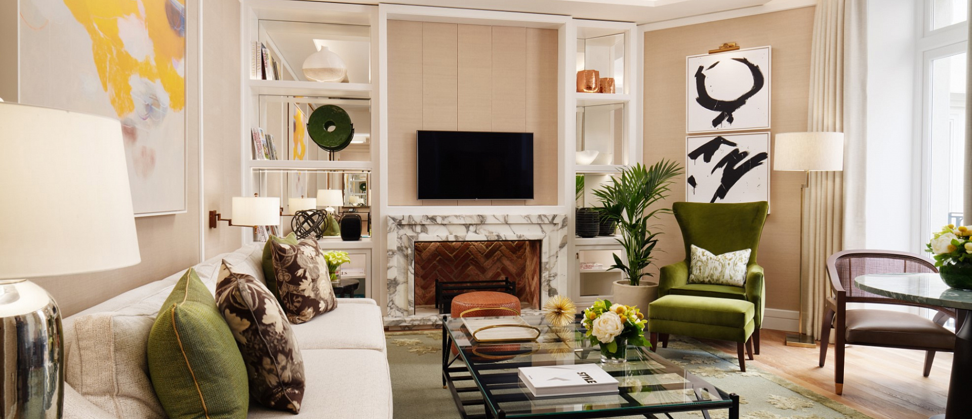 Номер с видом на двор. Отдельная гостиная с камином, рабочая зона с большим столом. В некоторых номерах есть балкон. Тропический душ, отдельная ванна, встроенный телевизор и полы с подогревом в ванной комнате. Можно объединить с соседним номером.