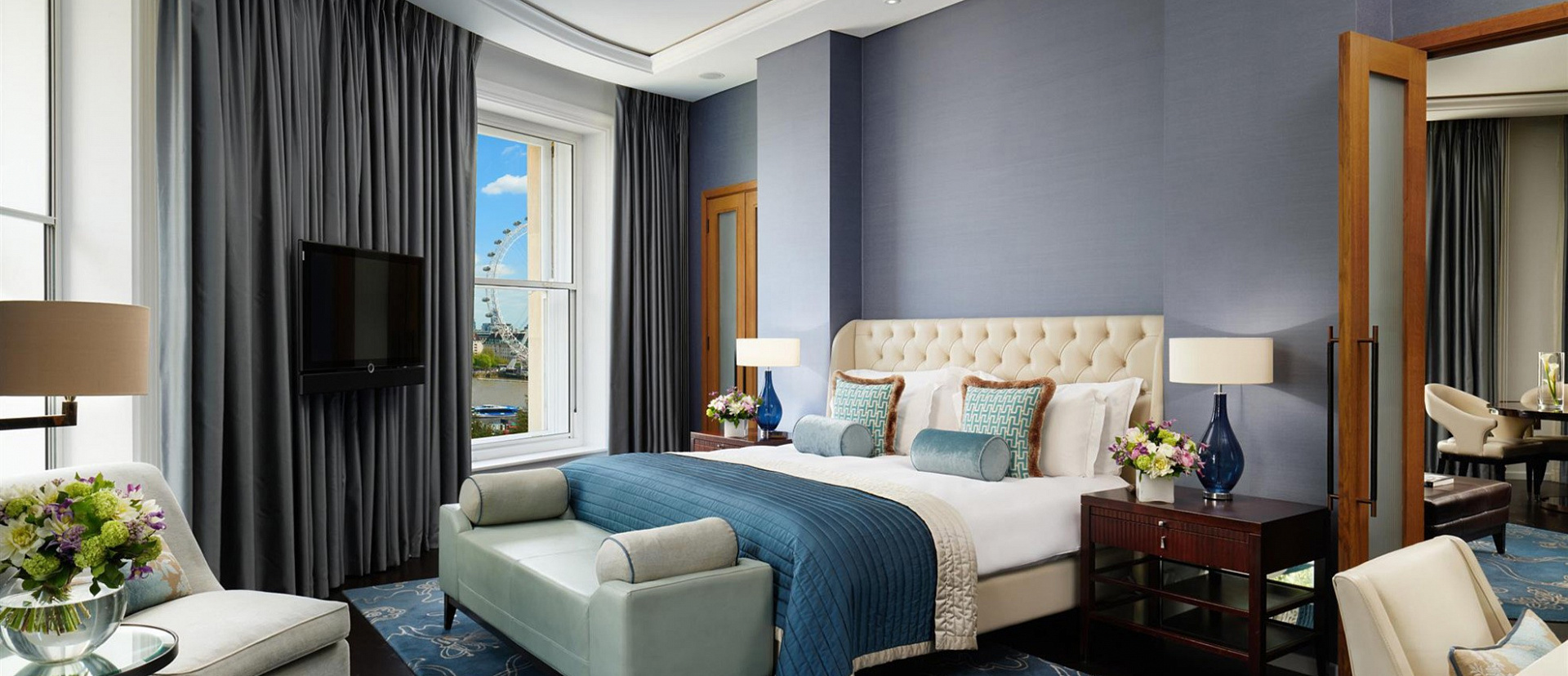 Номер с панорамным видом на Темзу, Лондонское колесо обозрения, Южный берег и собор Святого Павла. Гардеробная, отдельная гостиная и обеденный стол на четыре персоны. Кровать super king-size в спальне. Тропический душ, отдельная ванна, встроенный телевизор и полы с подогревом в ванной комнате. Диван-кровать в гостиной можно использовать как дополнительное спальное место. Есть гостевой туалет. Можно объединить с соседним номером.