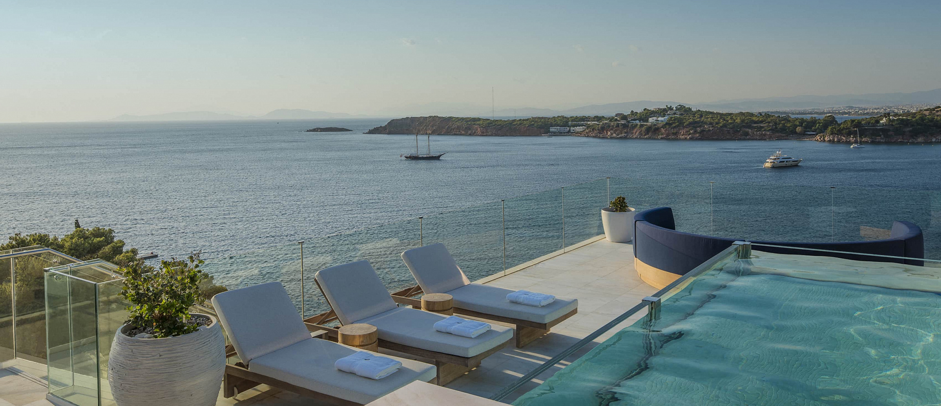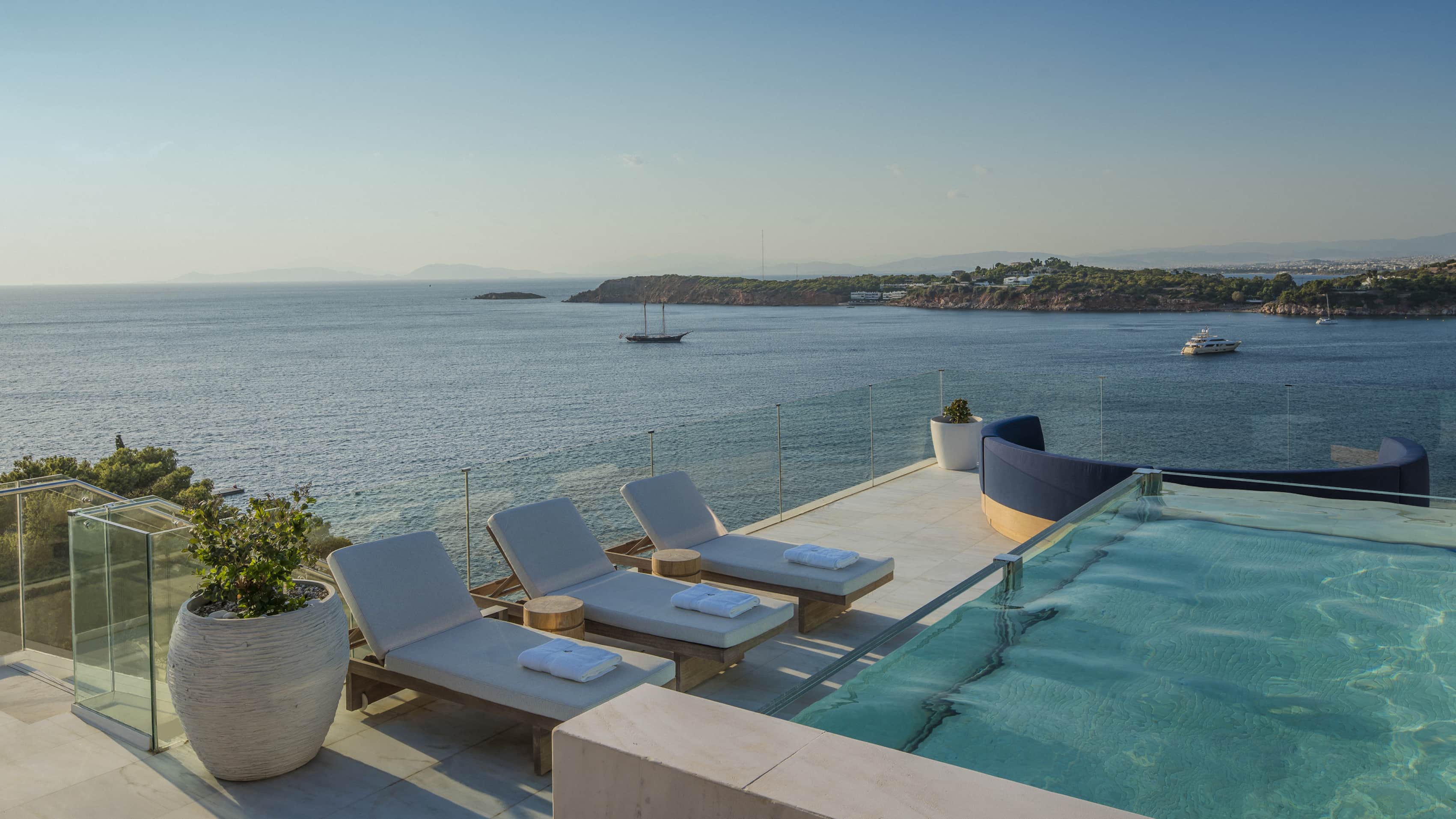 Пентхаус с одной спальней, бассейном и видом на море. Отдельная гостиная с обеденным столом и лаунж-зоной. К спальне примыкает гардеробная и ванная комната с двумя раковинами, глубокой ванной и отдельным душем. Кровать king-size.