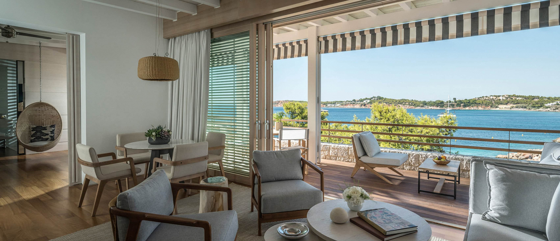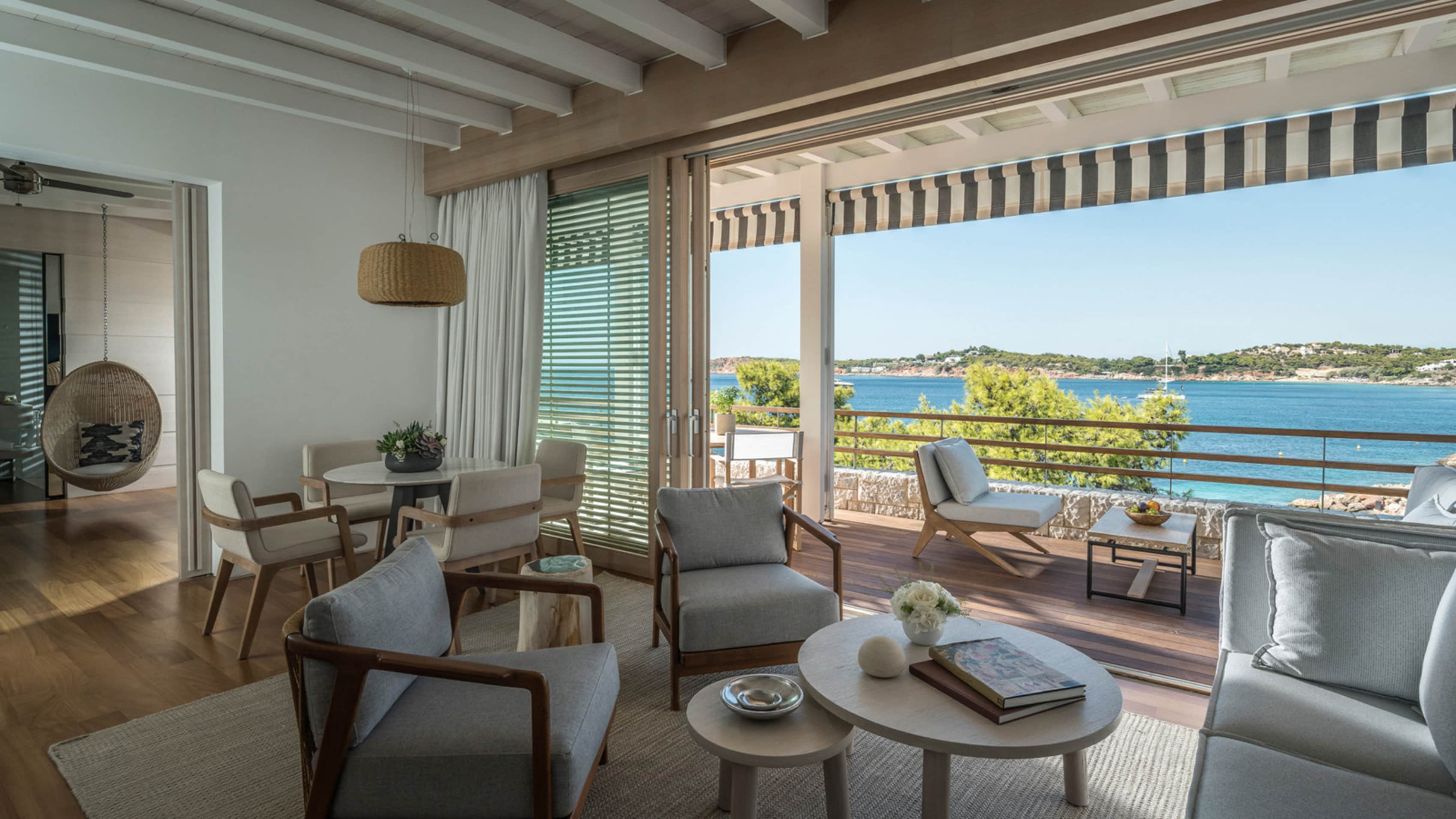 Домик на берегу моря с одной спальней. Отдельная гостиная с обеденным столом и лаунж-зоной. Кровать king-size в спальне. Две раковины, глубокая ванная и отдельный душ в ванной комнате. Есть гостевой туалет.