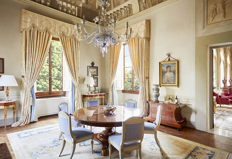 Отель на территории самого большого частного сада во Флоренции, в десяти минутах ходьбы от Пьяцца-Дель-Дуомо. Многие номера здесь сохранили старинные детали: фрески, барельефы, камины и мансардные окна. SPA и оздоровительный центр находятся в отдельном здании: на двух уровнях расположились также тренажерный зал и студия йоги, рядом — открытый бассейн.
