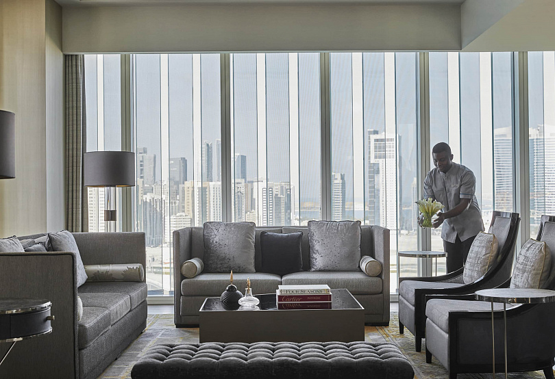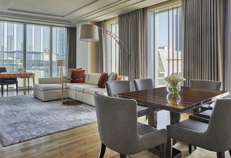 Находясь в самом сердце делового района, он привлекает бизнесменов и влиятельных людей — неудивительно, что лаунж на первом этаже стали называть «гостиной Абу-Даби».