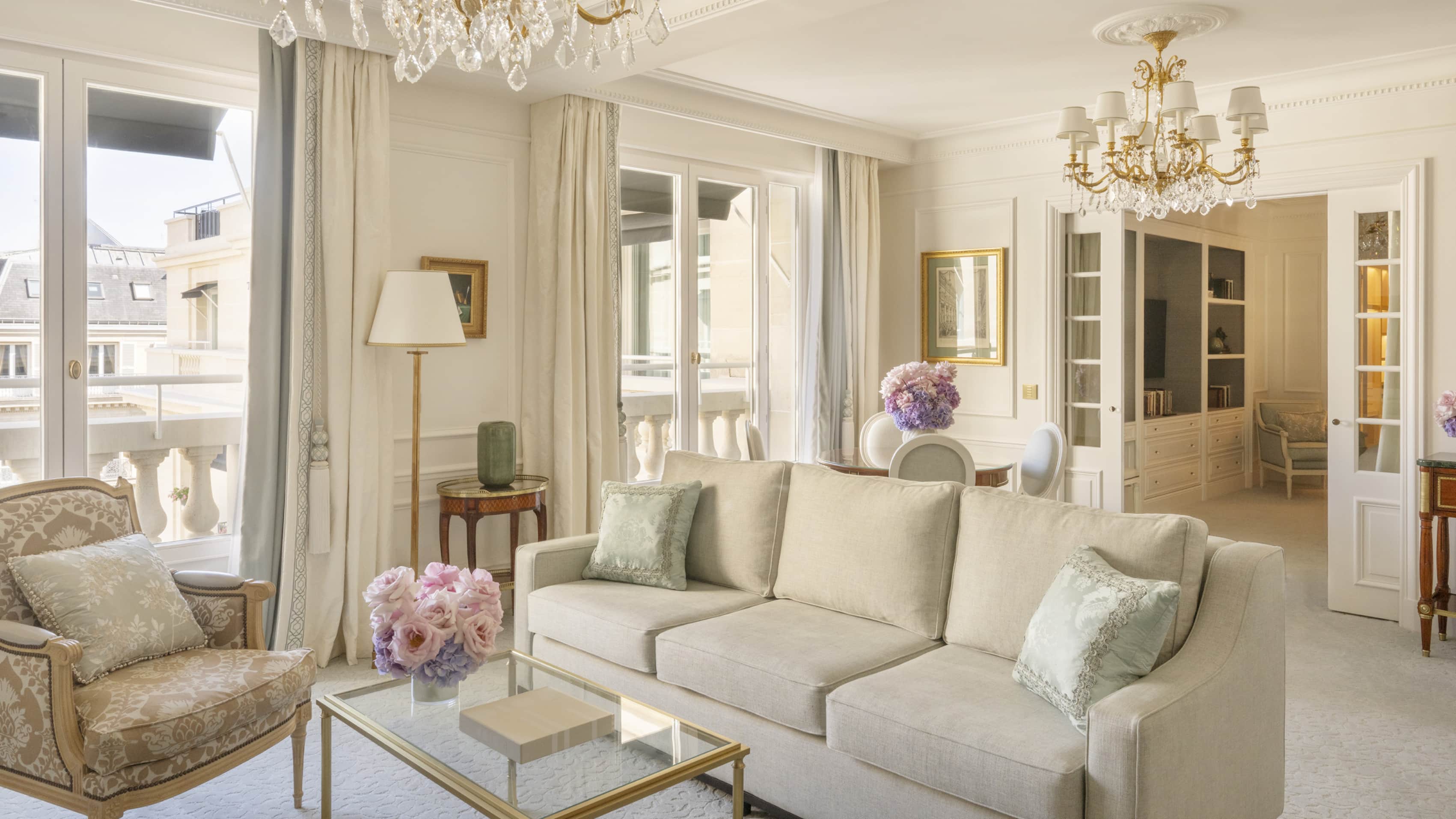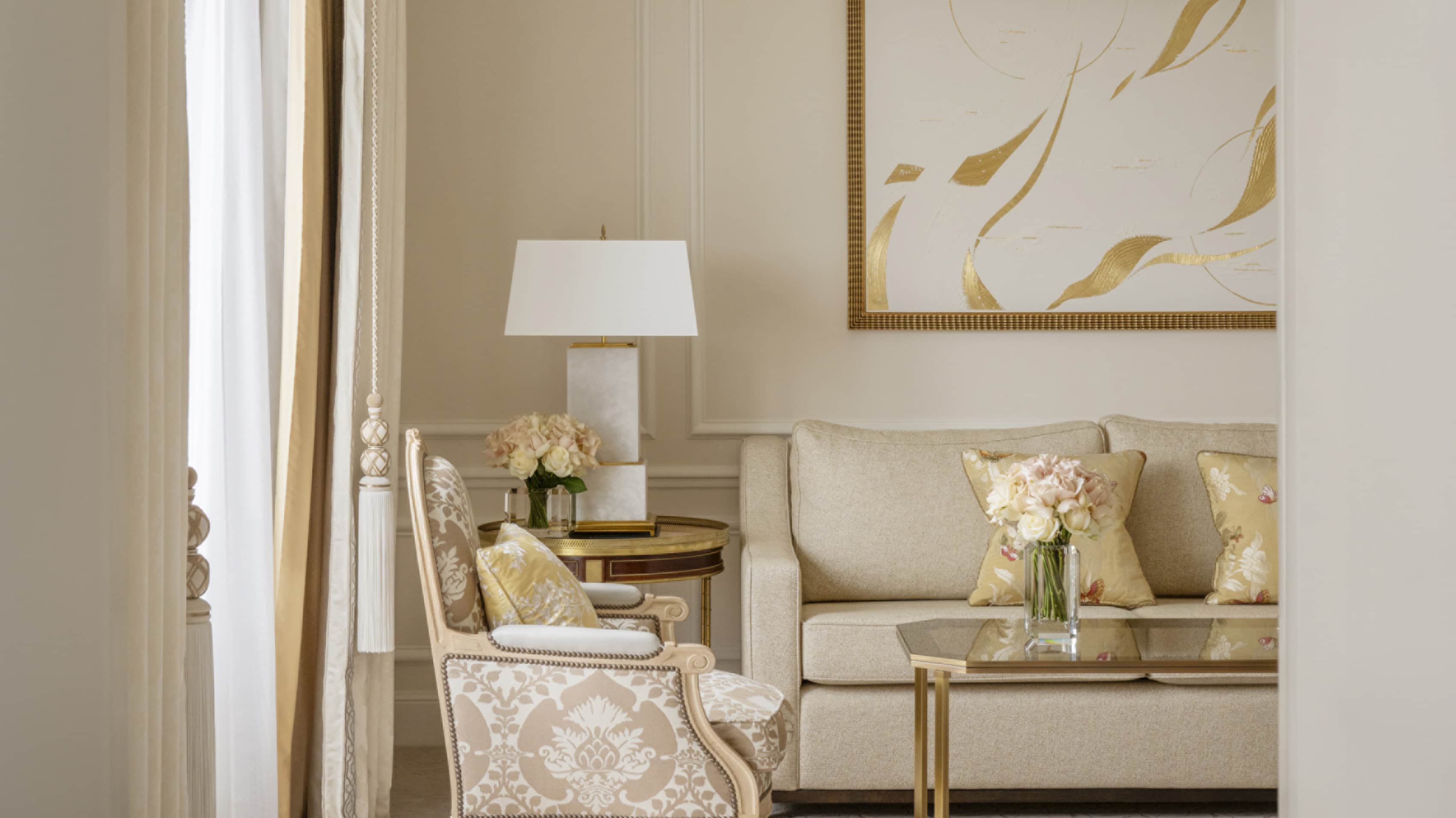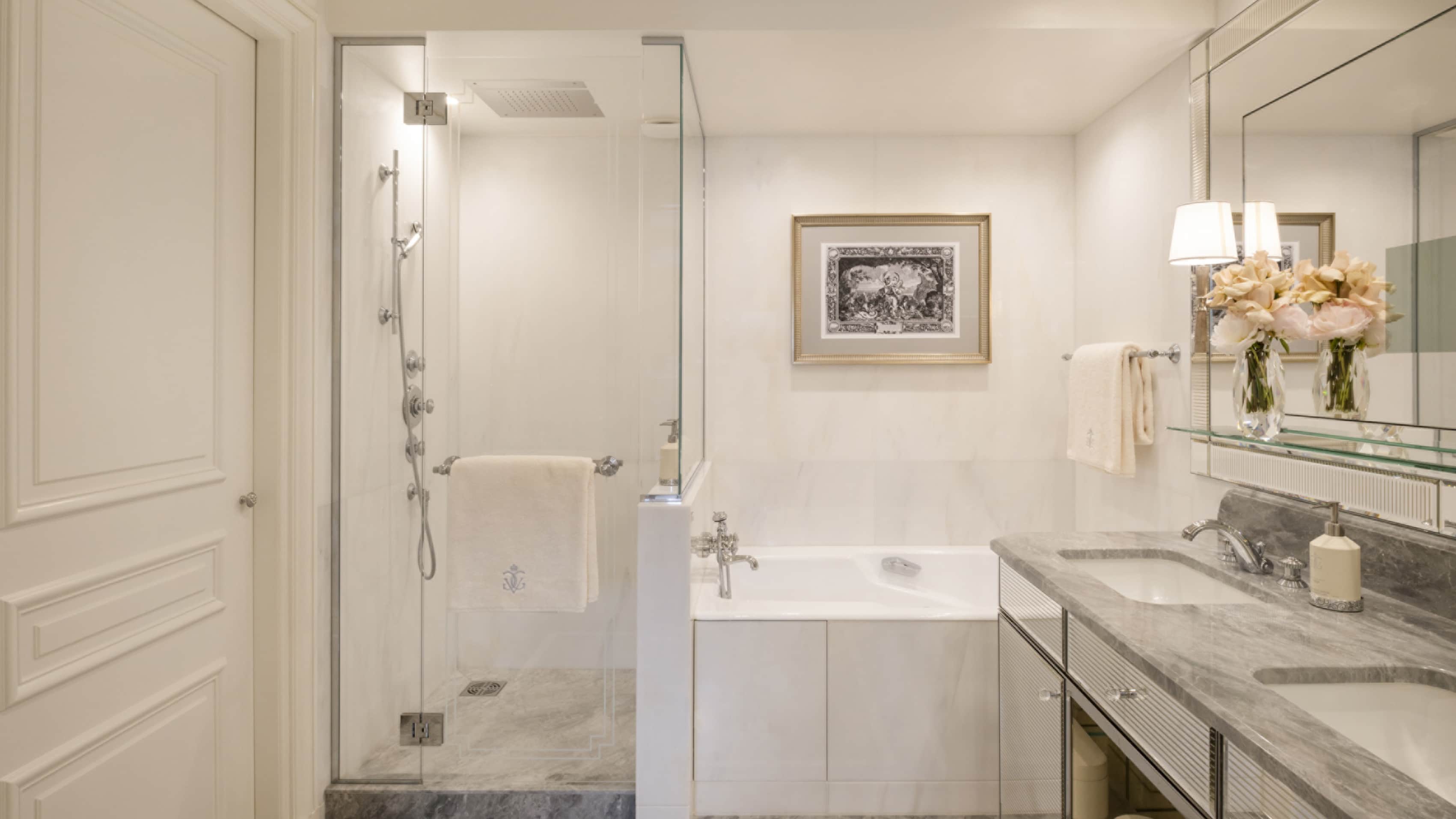 Номер с отдельной гостиной, рабочей и обеденной зоной. Кровать king-size в спальне. Две раковины, ванна и душевая кабина в ванной комнате. Гардеробная, гостевой туалет. Кресло-кровать можно использовать как дополнительное спальное место.