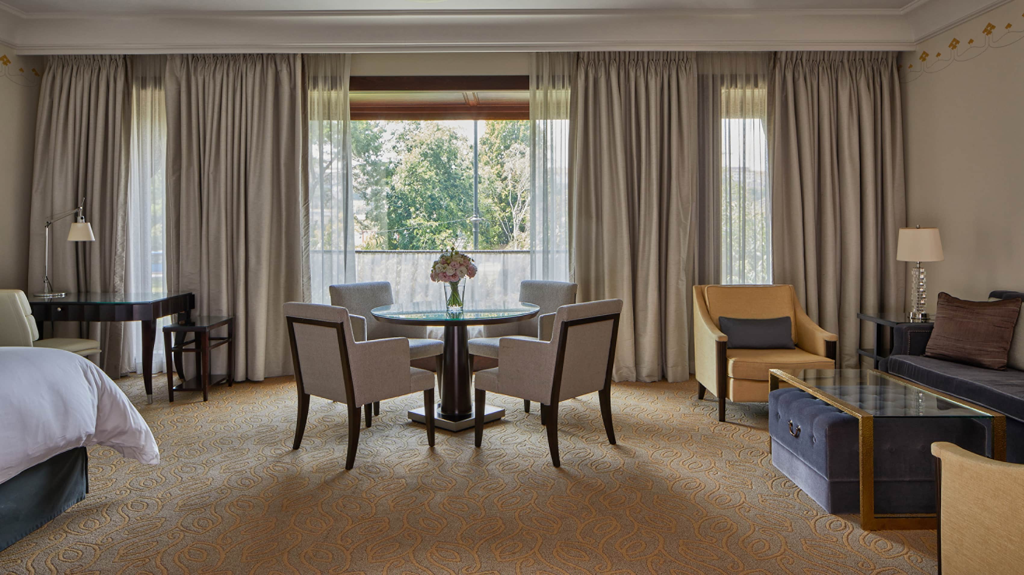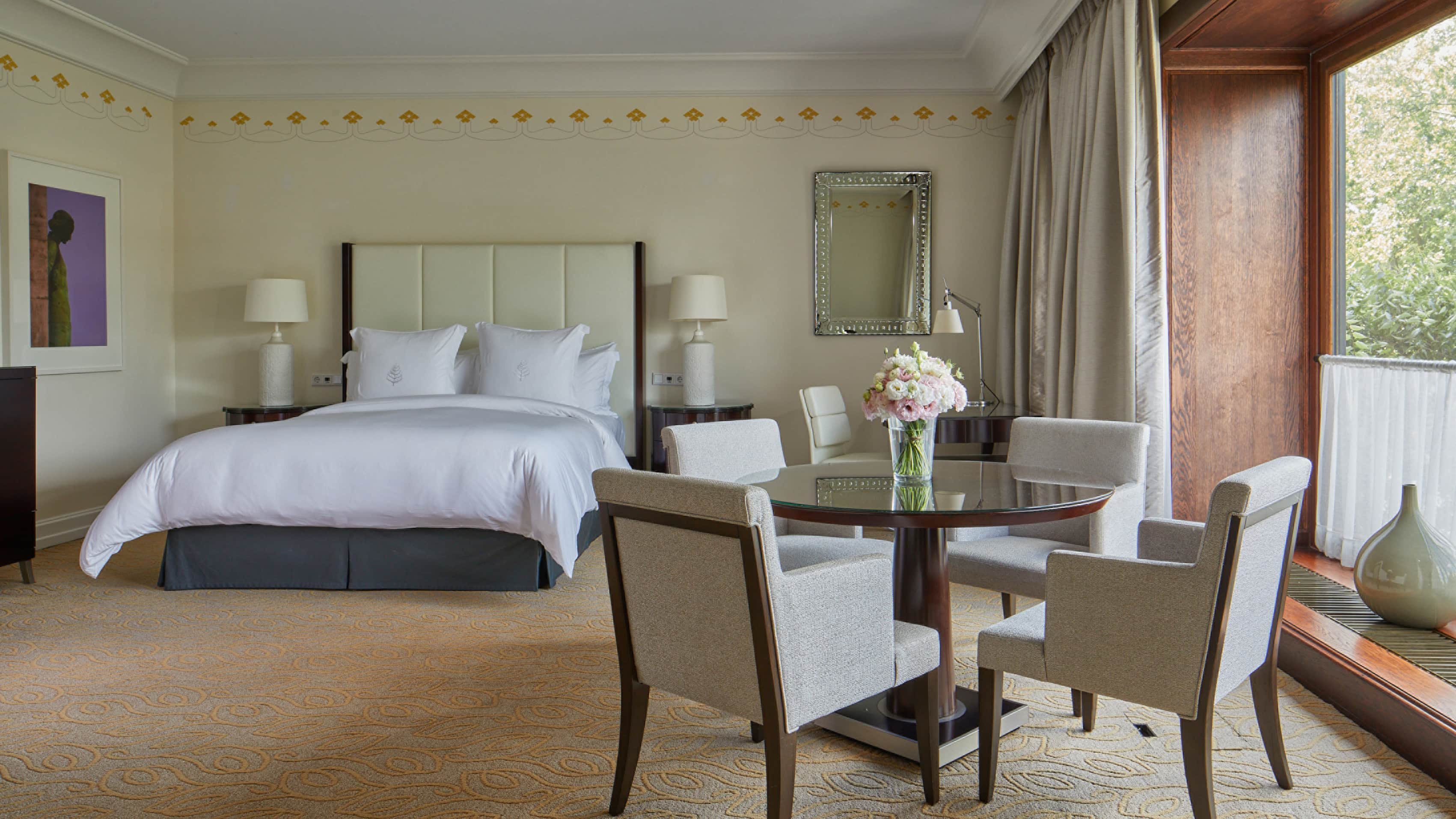 Номер с видом на парк доступен двумя отдельными кроватями или одной размера king-size. Просторная гостиная зона, обеденный стол на четыре персоны. Ванна и душевая кабина в ванной комнате. Можно расширить до номера с двумя или тремя спальнями.