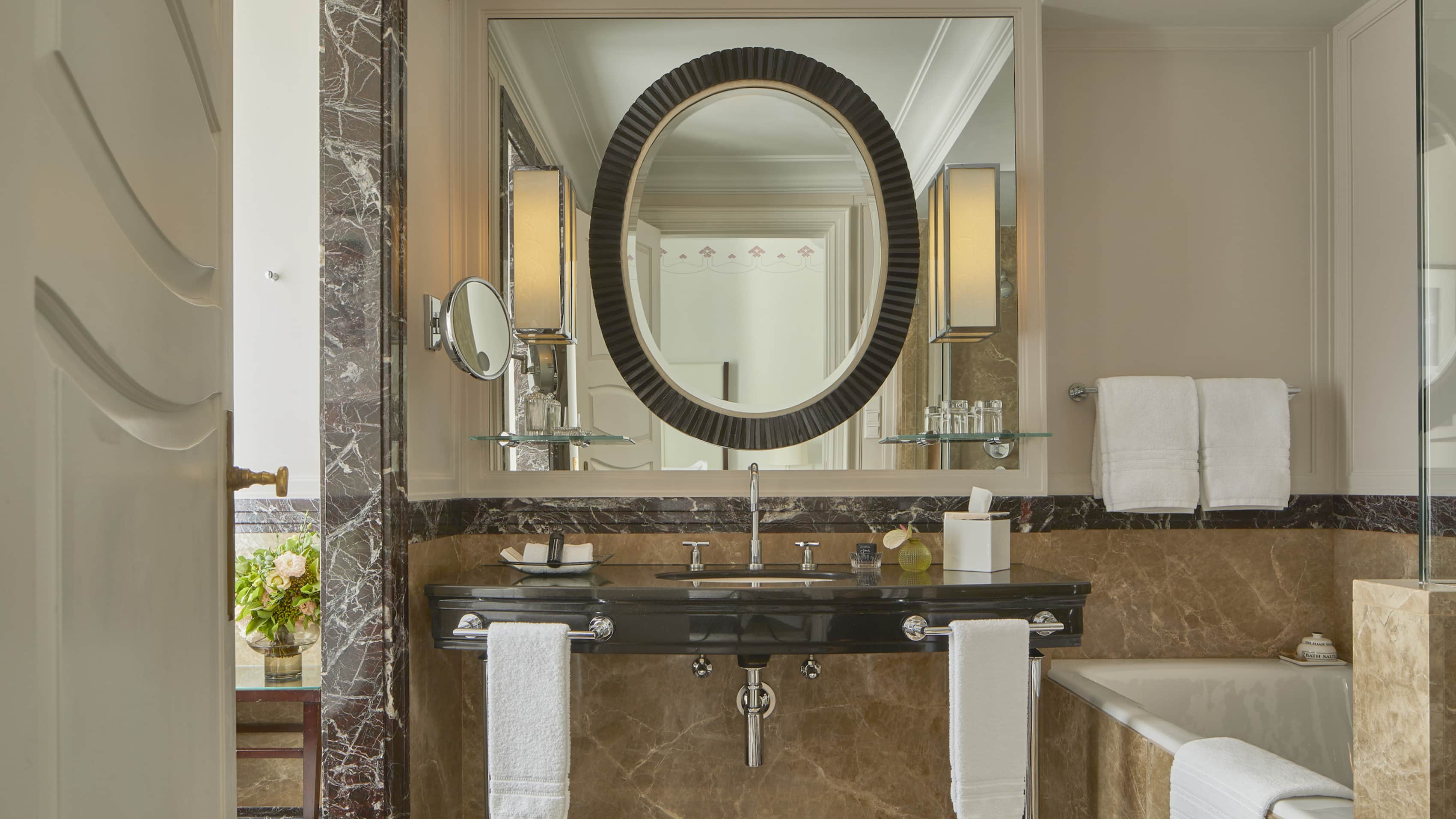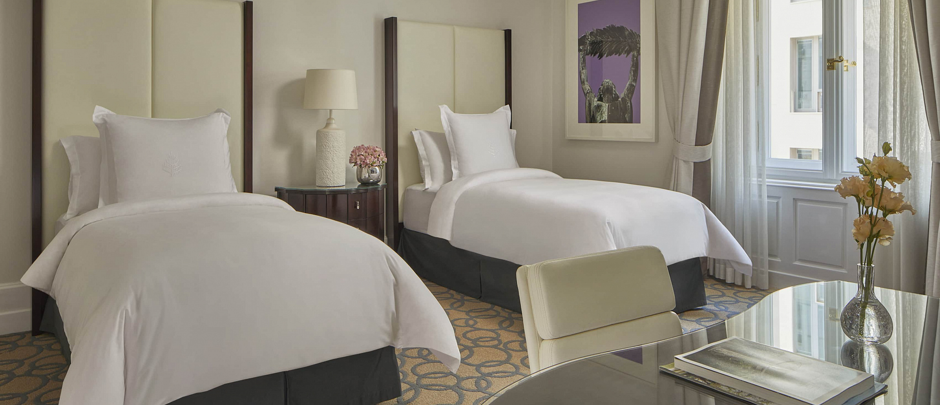 Номер с видом на улицу или внутренний двор отеля. Доступен с двумя отдельными кроватями или одной размера king-size. Отделанная мрамором комната с ванной и душем.