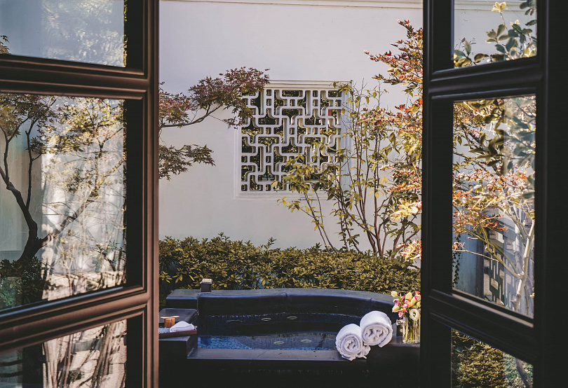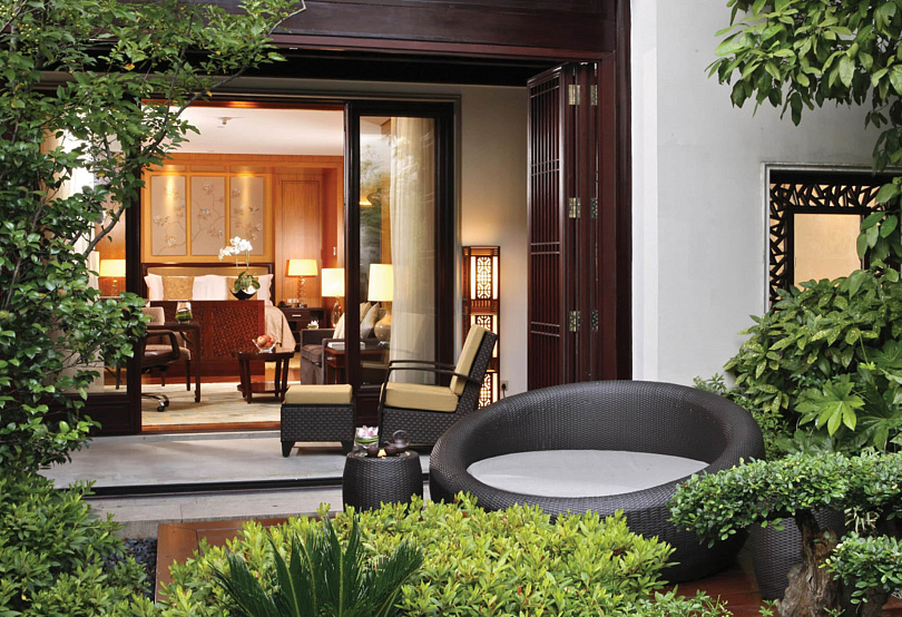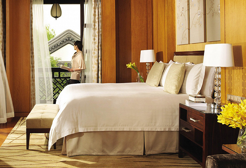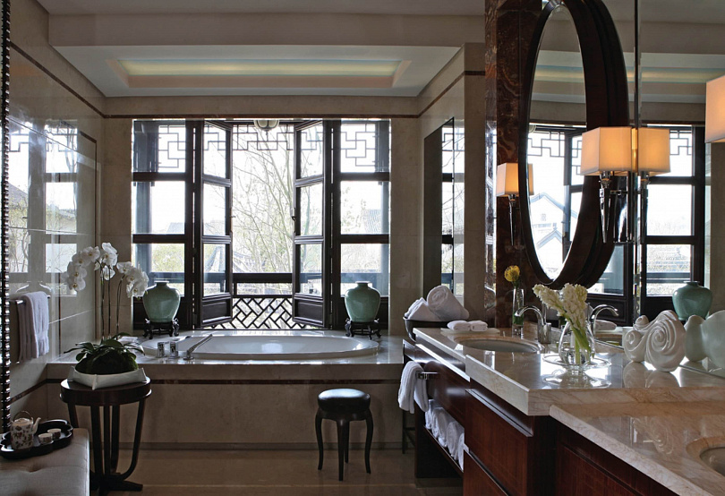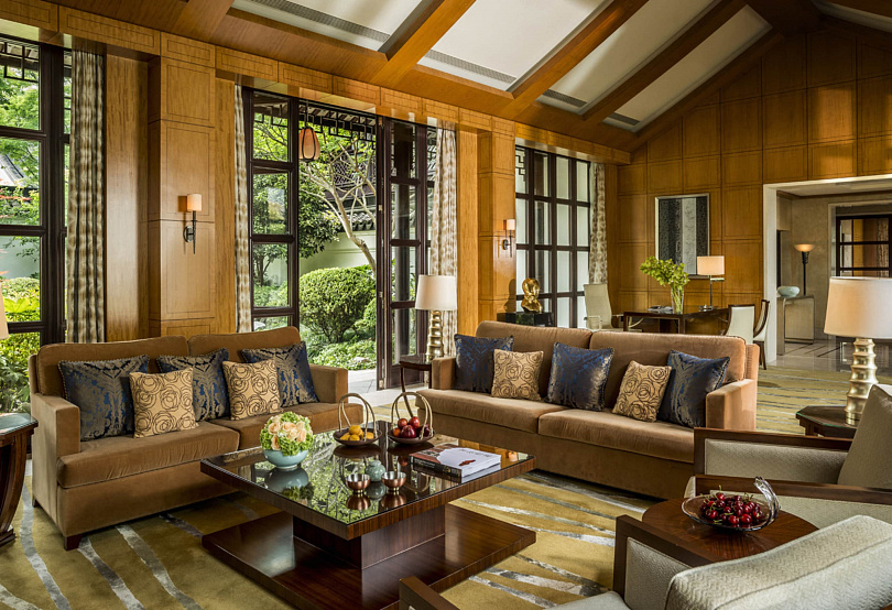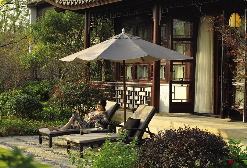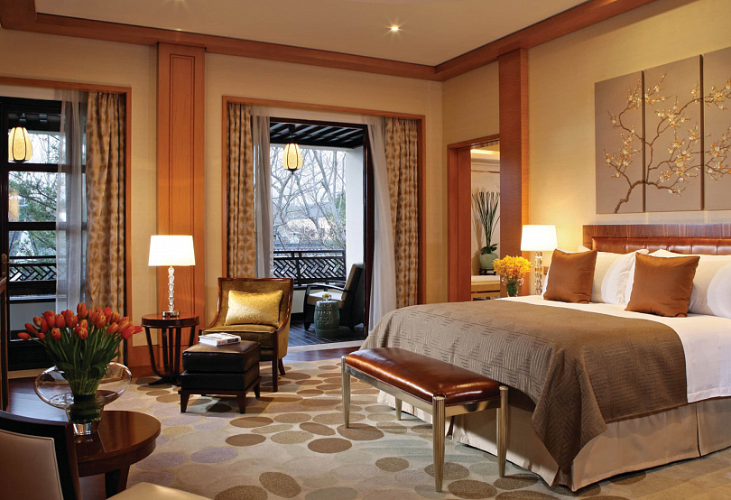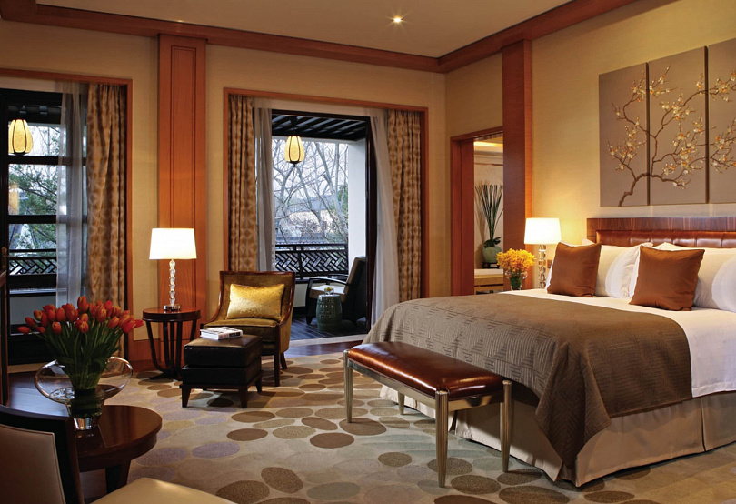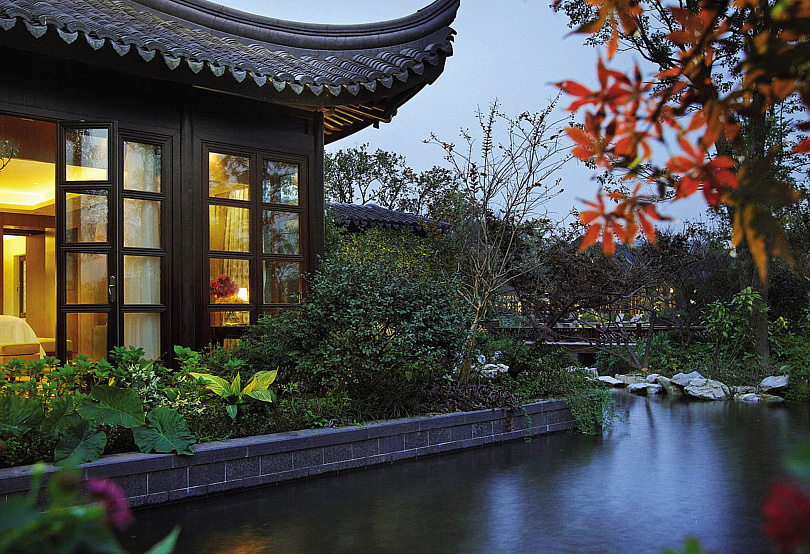 Озеро Сиху, веками вдохновлявшее художников и поэтов, сегодня — объект Всемирного наследия ЮНЕСКО, и выглядит так, если бы нью-йоркскому Центральному парку были сотни лет и он был усыпан древними храмами. Отель гармонично вписывается в пейзаж со своими садами, покрытыми прудами лилиями и традиционными павильонами. В сдержанном стиле много отсылок к традиционному китайскому дизайну, а номера любой категории, от люксов до трехэтажных вилл, представляют собой островки спокойствия, уединения и стиля в городе, который может быть определением хаоса.