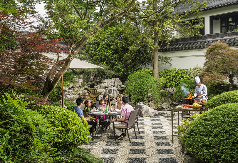 Развлечения на территории включают в себя превосходный spa-центр, два бассейна и рестораны, специализирующиеся на шанхайской, региональной, итальянской и западной кухнях. Обязательно впишите в свое расписание прогулку по озеру на традиционных деревянных лодках с пикником на одном из живописных берегов.
