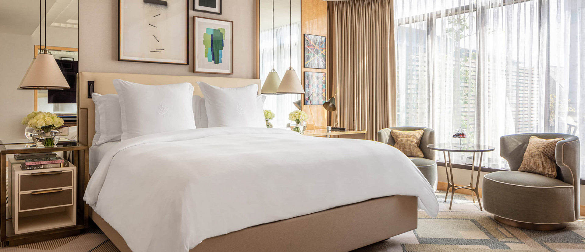 Номер с террасой, видом на город и окнами от пола до потолка. Кровать king-size, детская кроватка доступна по запросу.
