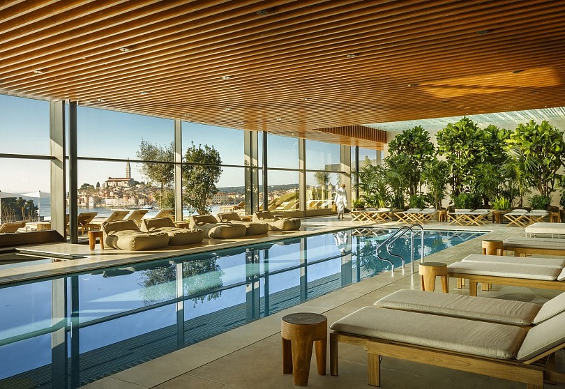 Впечатляющий размахом отель из стекла и камня окружен безупречными виноградниками и открывает виды на Адриатику и старый город Ровинь. Чуть в стороне от классических туристических маршрутов, он становится идеальным местом для отдыха, если отдых для вас — это просторные номера с видом, бассейны, прогулки по островам и беседы за бокалом вина в живописных местах.