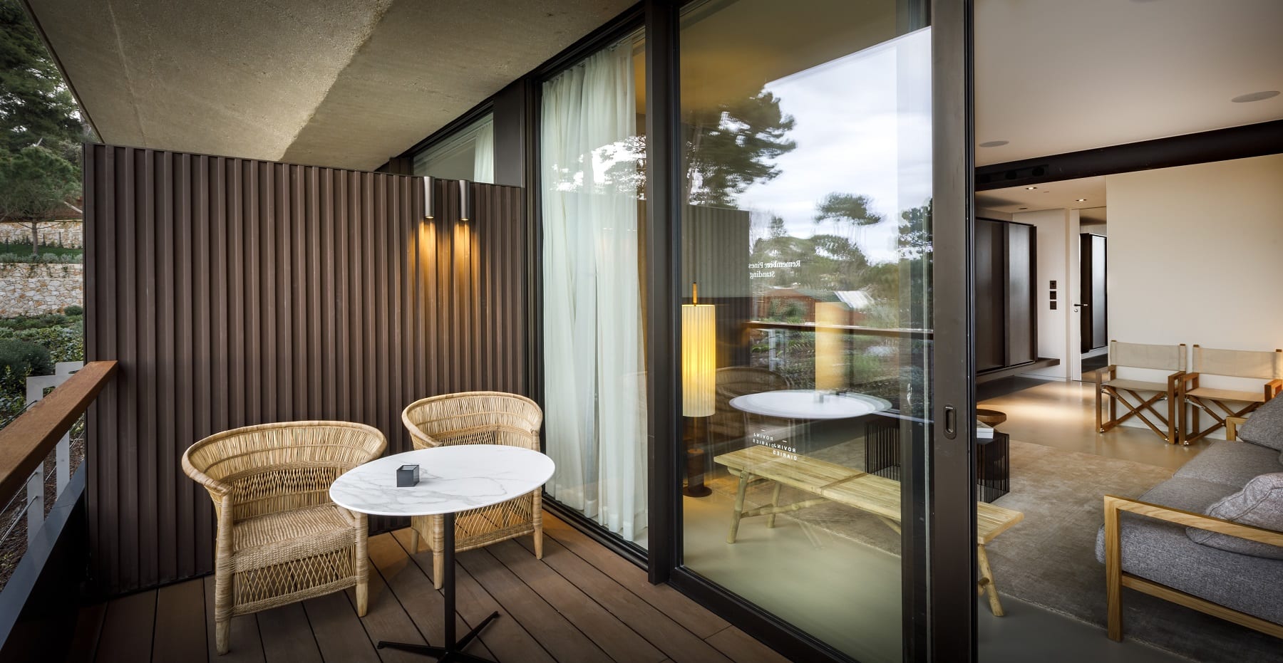 В номерах — продуманные детали, арт-объекты и просторные ванны. В меню — щедрые и здоровые завтраки и блюда, которое подойдут как для обедов в ресторане, так и для ужина на вашей террасе на закате.
