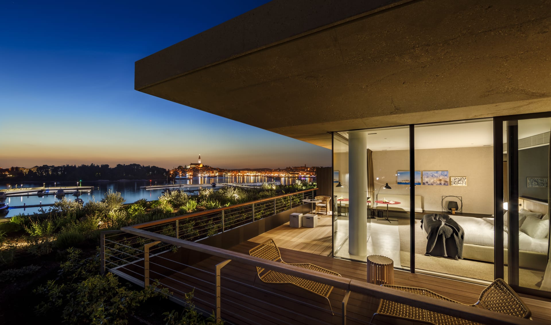 Впечатляющий размахом отель из стекла и камня окружен безупречными виноградниками и открывает виды на Адриатику и старый город Ровинь. Чуть в стороне от классических туристических маршрутов, он становится идеальным местом для отдыха, если отдых для вас — это просторные номера с видом, бассейны, прогулки по островам и беседы за бокалом вина в живописных местах.