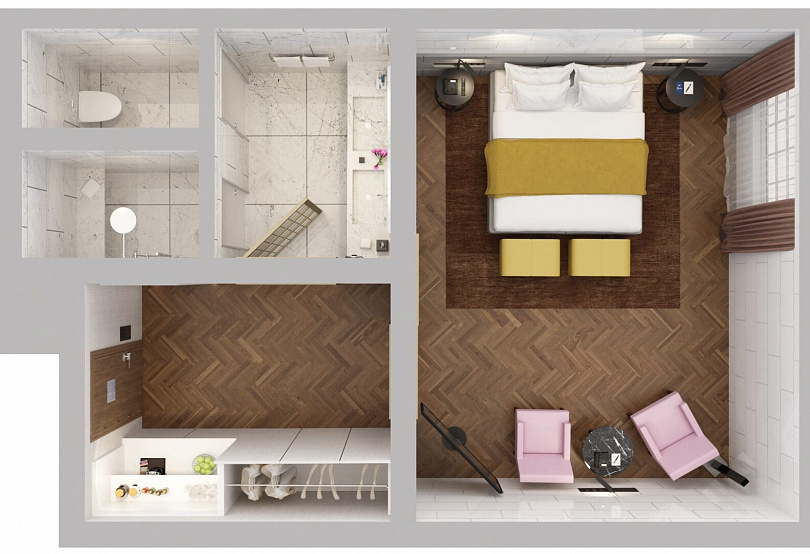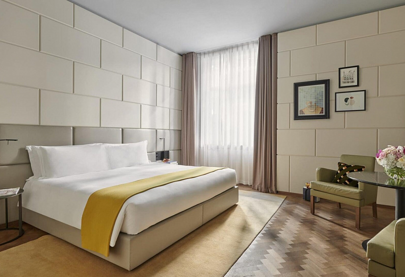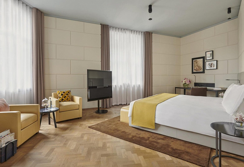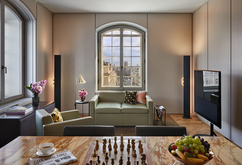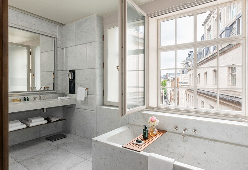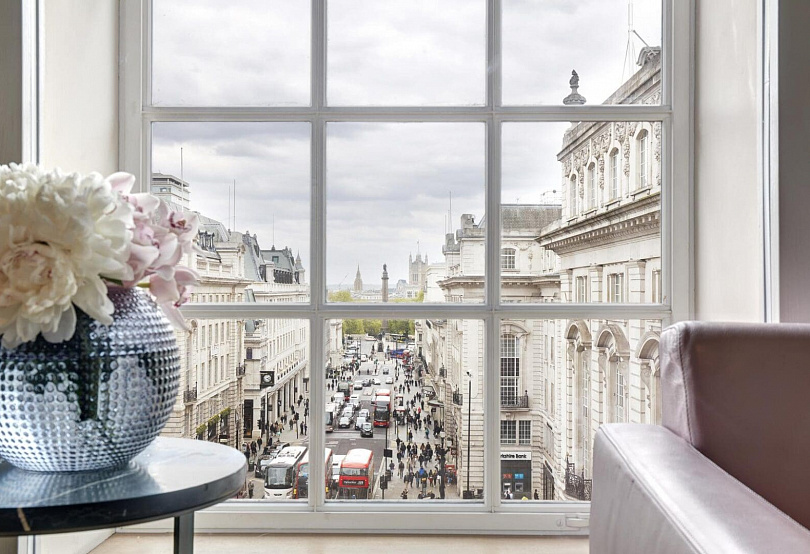 У отеля два входа: главный — на Эйр-стрит и оригинальный, сохранившийся с 1865 — на Риджент-стрит. С одной стороны от вас будет театральный квартал, с другой — Сохо, а до Королевской академии искусств, Гайд-парка и лучших магазинов столицы можно дойти пешком.