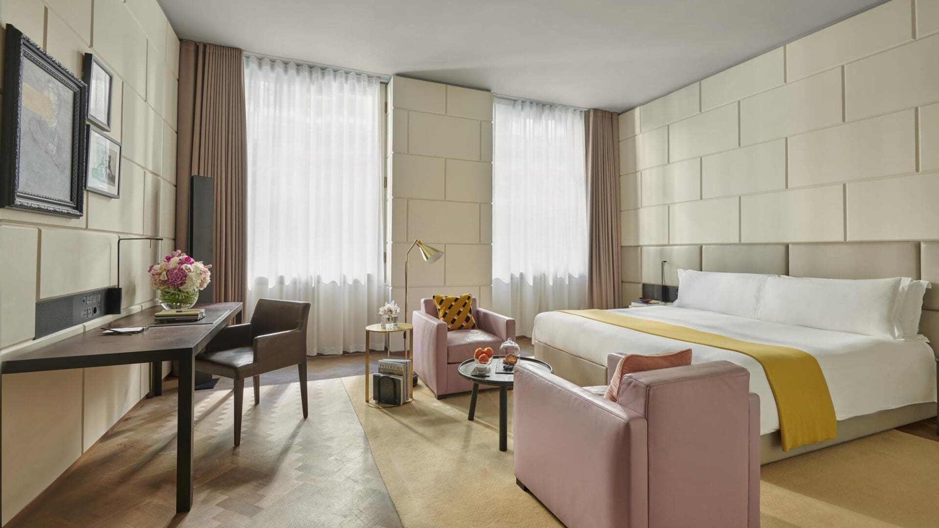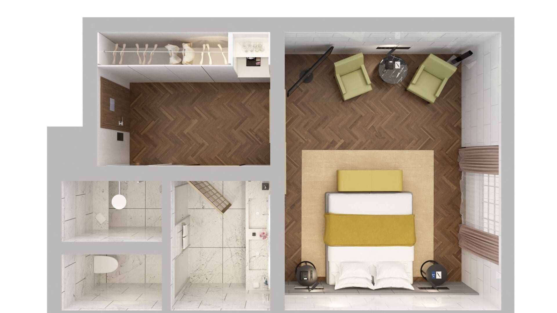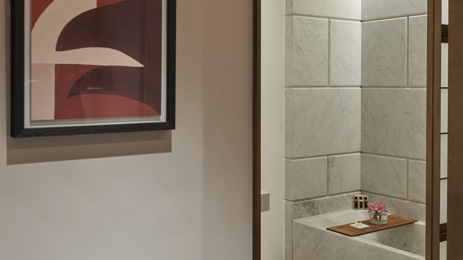 Просторный номер с большим количеством естественного света. Ванная комната из каррарского мрамора с тропическим душем.