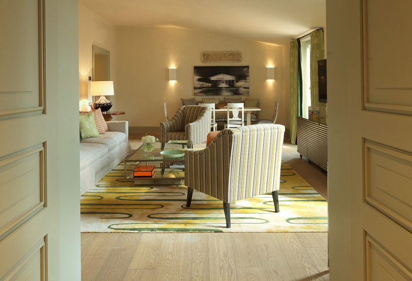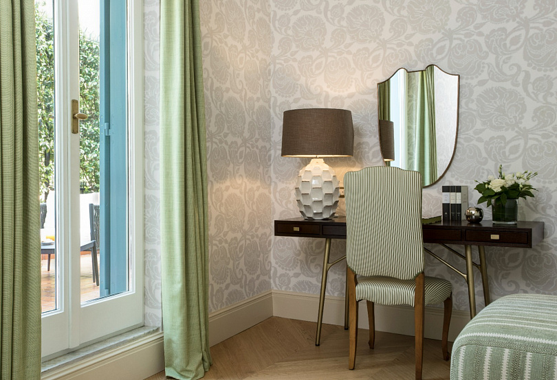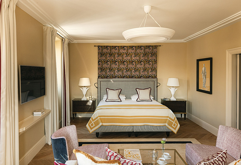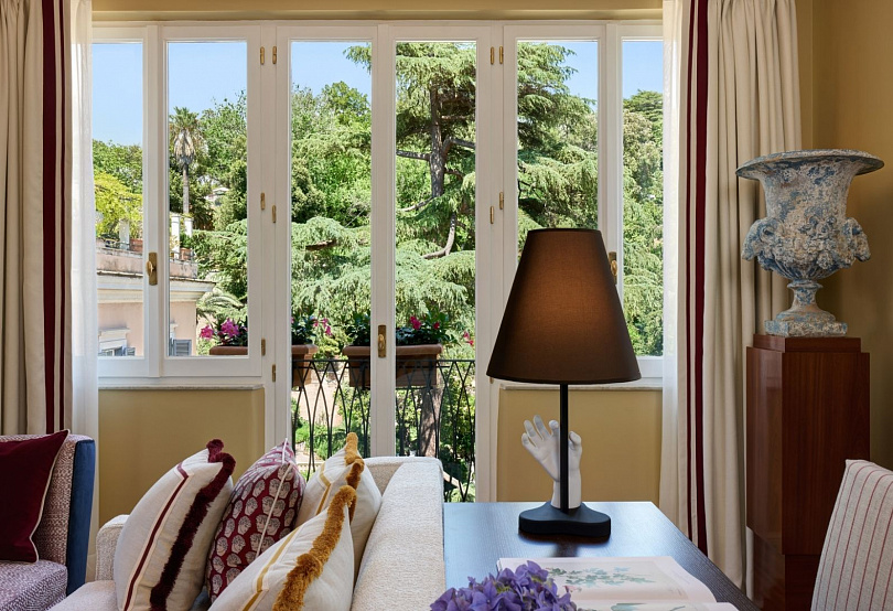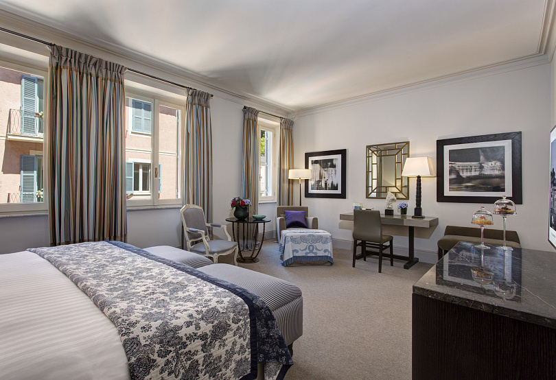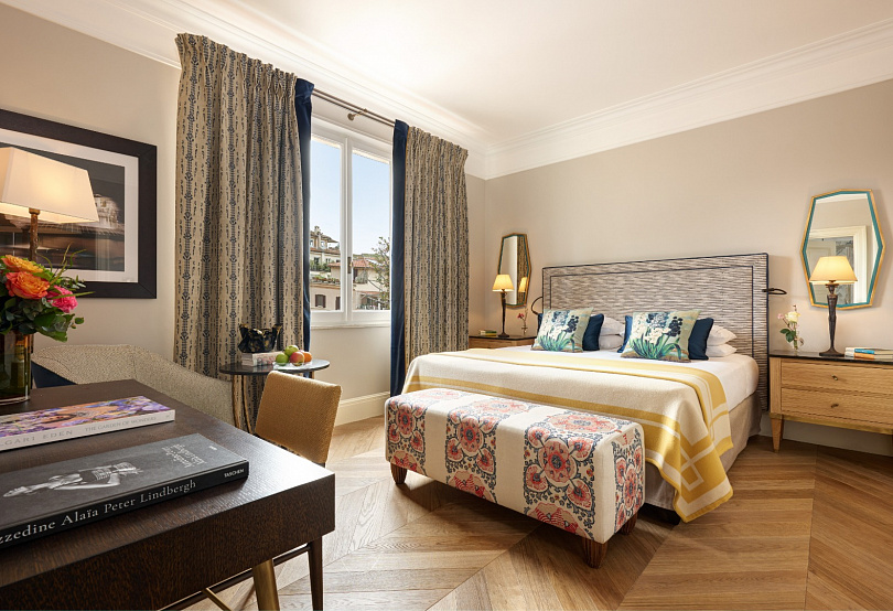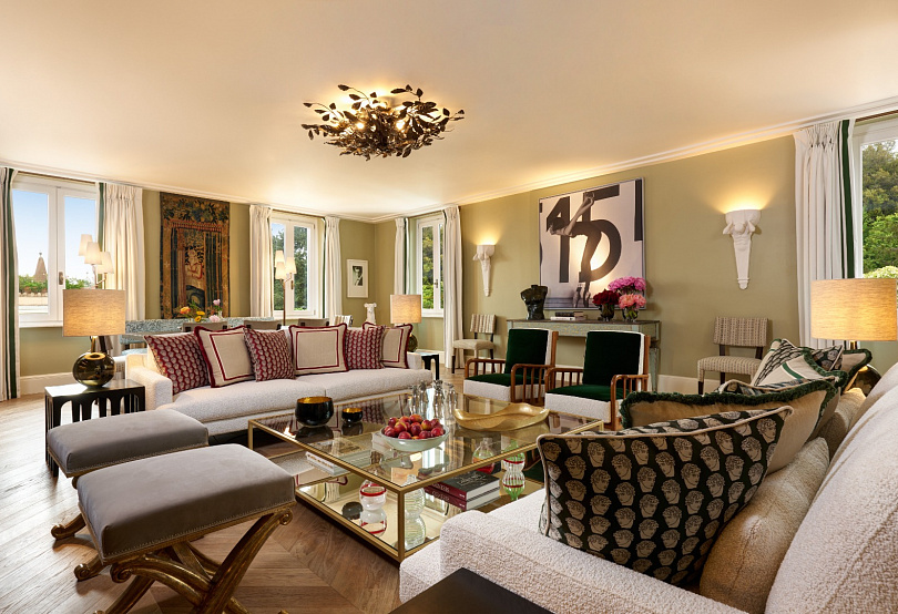 В интерьерах сочетание Древнего Рима и ар-деко, домашнего уюта и роскоши, старомодного в лучшем смысле гостеприимства и современных удобств. Яркая деталь — не так давно восстановленный сад XIX века, где черпали вдохновение Пикассо и Стравинский. Бар, названный в честь последнего, находится тут же, во внутреннем дворе.