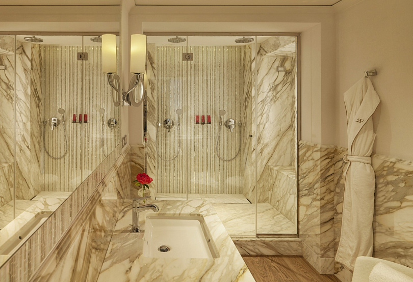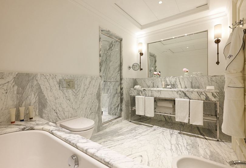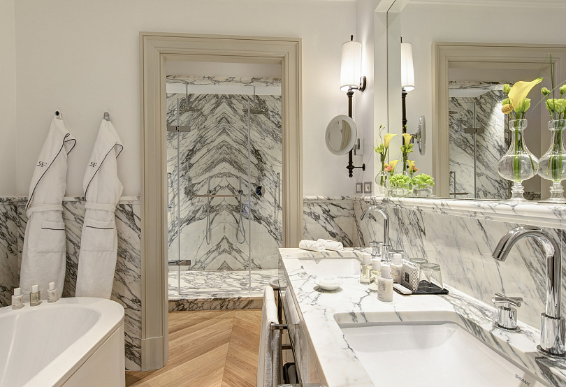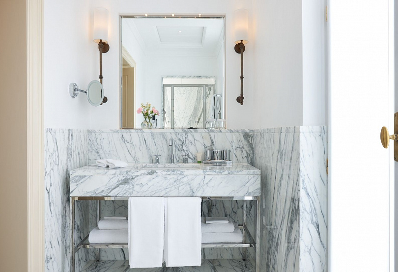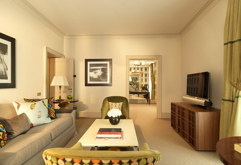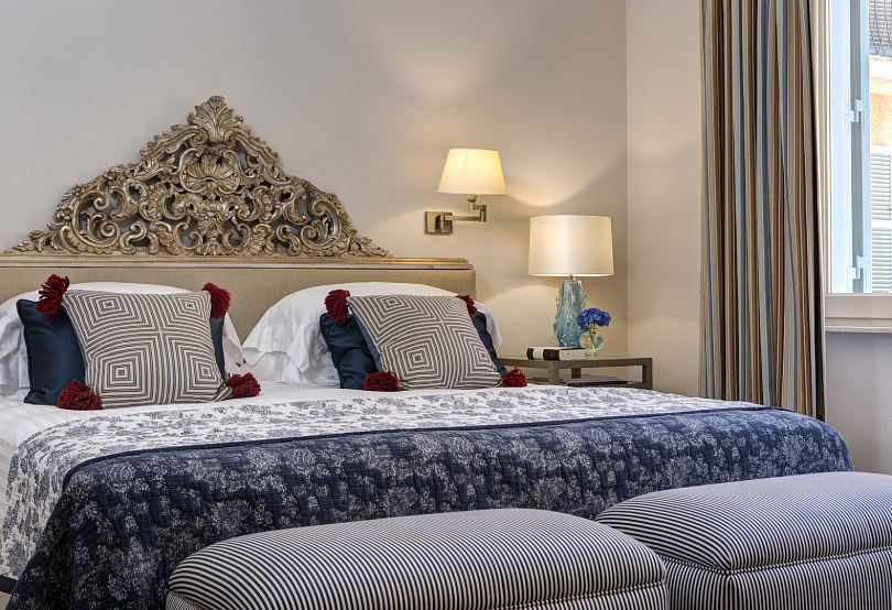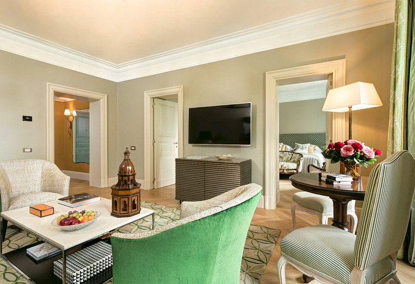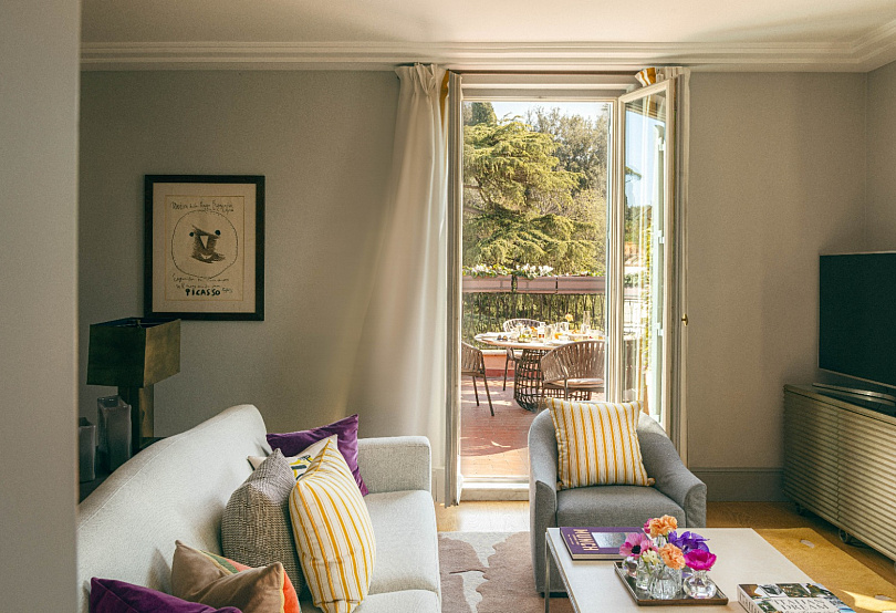 В интерьерах сочетание Древнего Рима и ар-деко, домашнего уюта и роскоши, старомодного в лучшем смысле гостеприимства и современных удобств. Яркая деталь — не так давно восстановленный сад XIX века, где черпали вдохновение Пикассо и Стравинский. Бар, названный в честь последнего, находится тут же, во внутреннем дворе.
