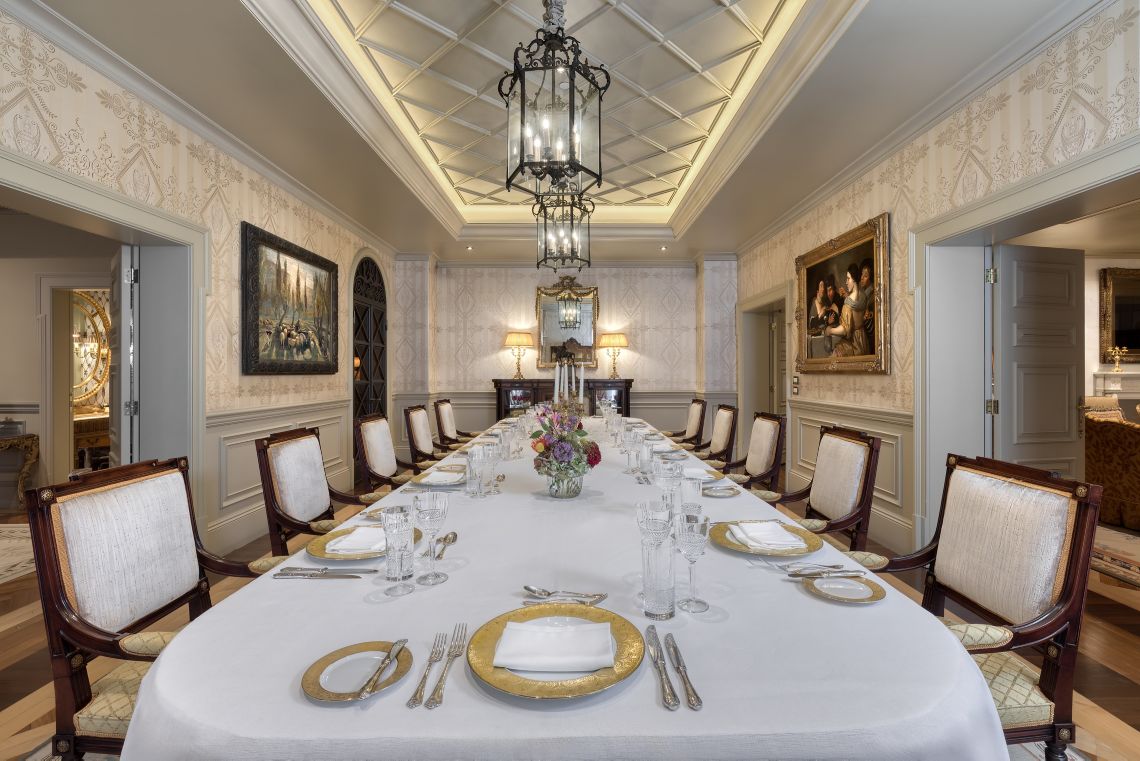 Номер на верхнем этаже с балконом и видом на город и Акрополь. Спальня с кроватью king-size. Отдельная гостиная с камином, столовая, гардеробная, конференц-зал и гостевой туалет. Две раковины, ванна и душ в ванной комнате. Некоторые номера этой категории можно объединить с соседними.