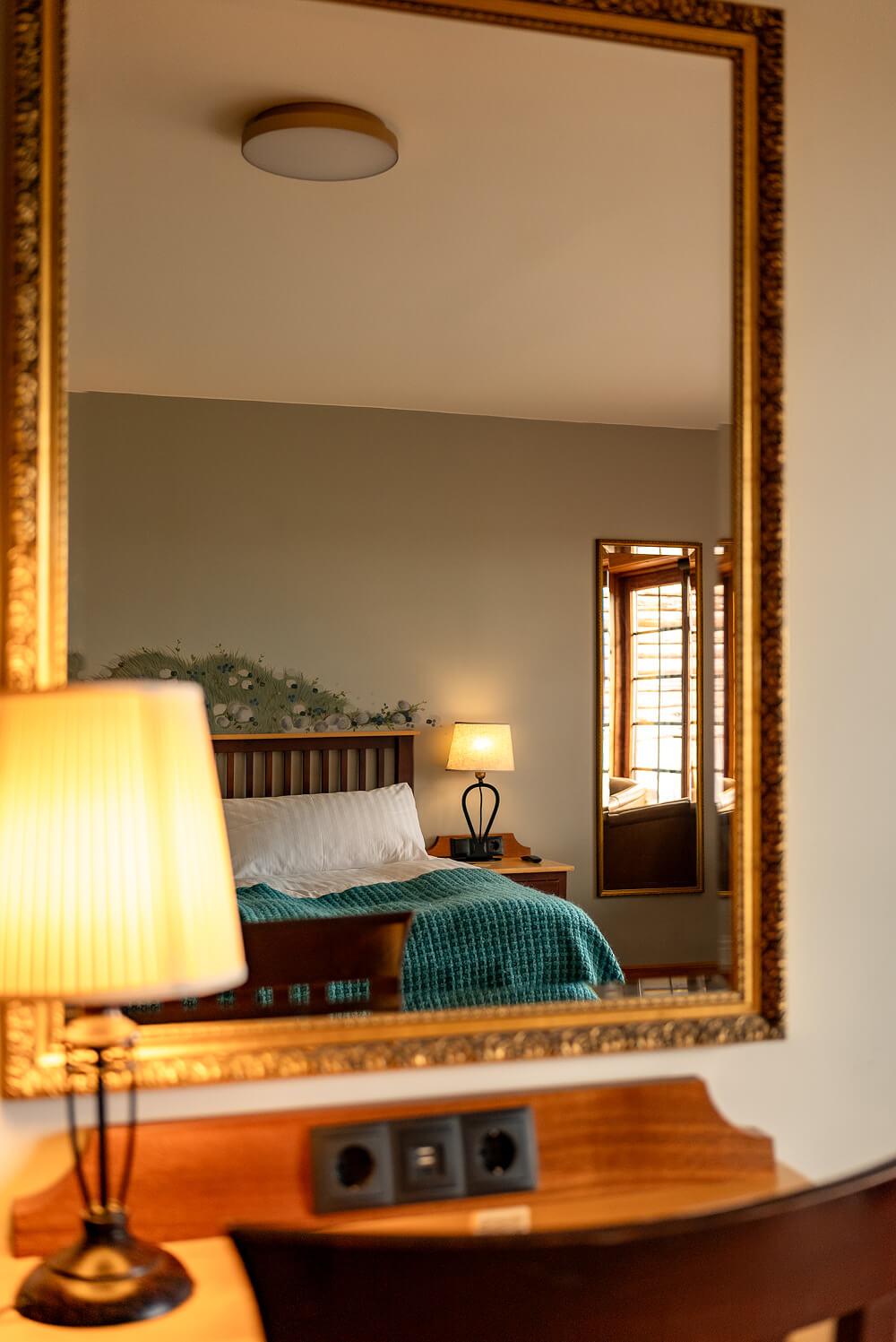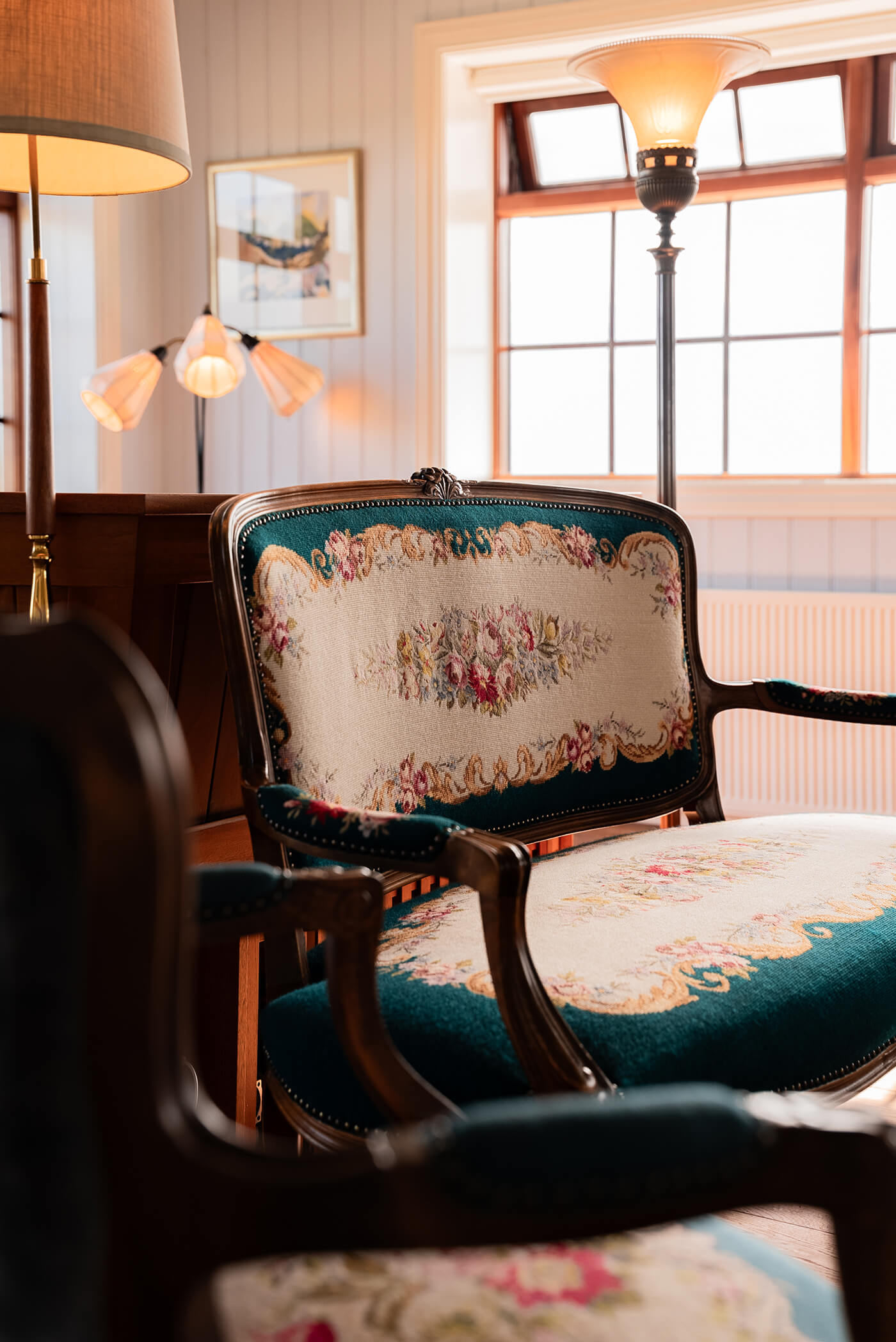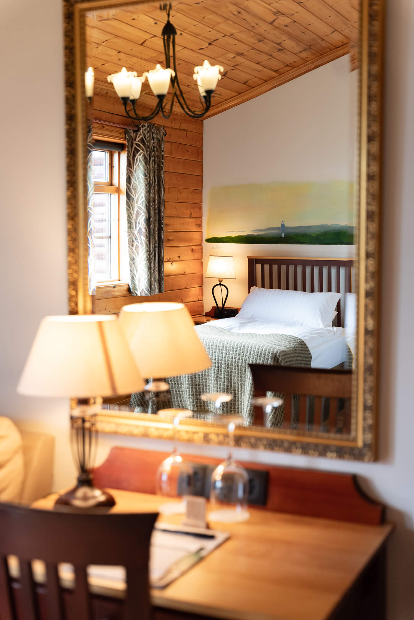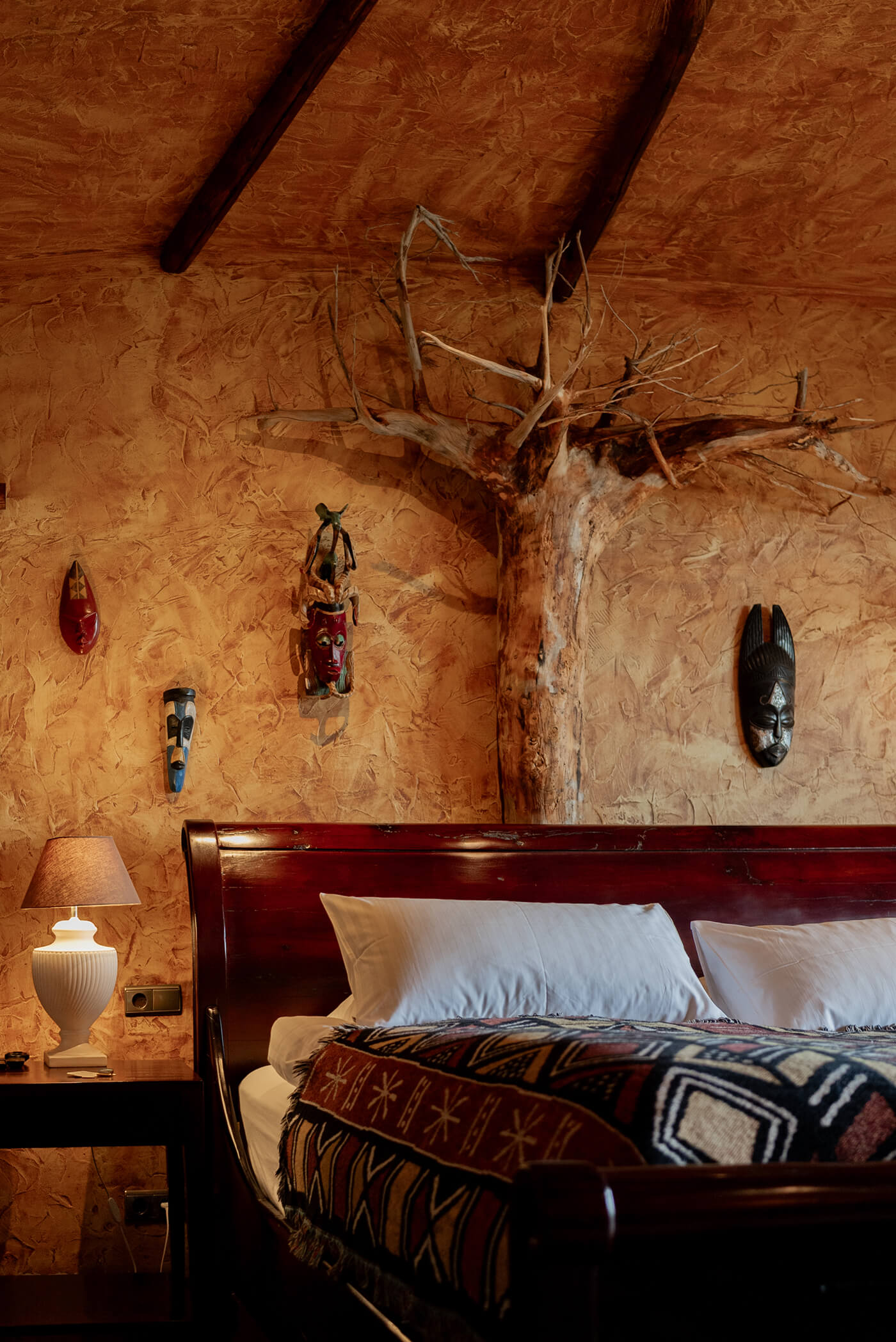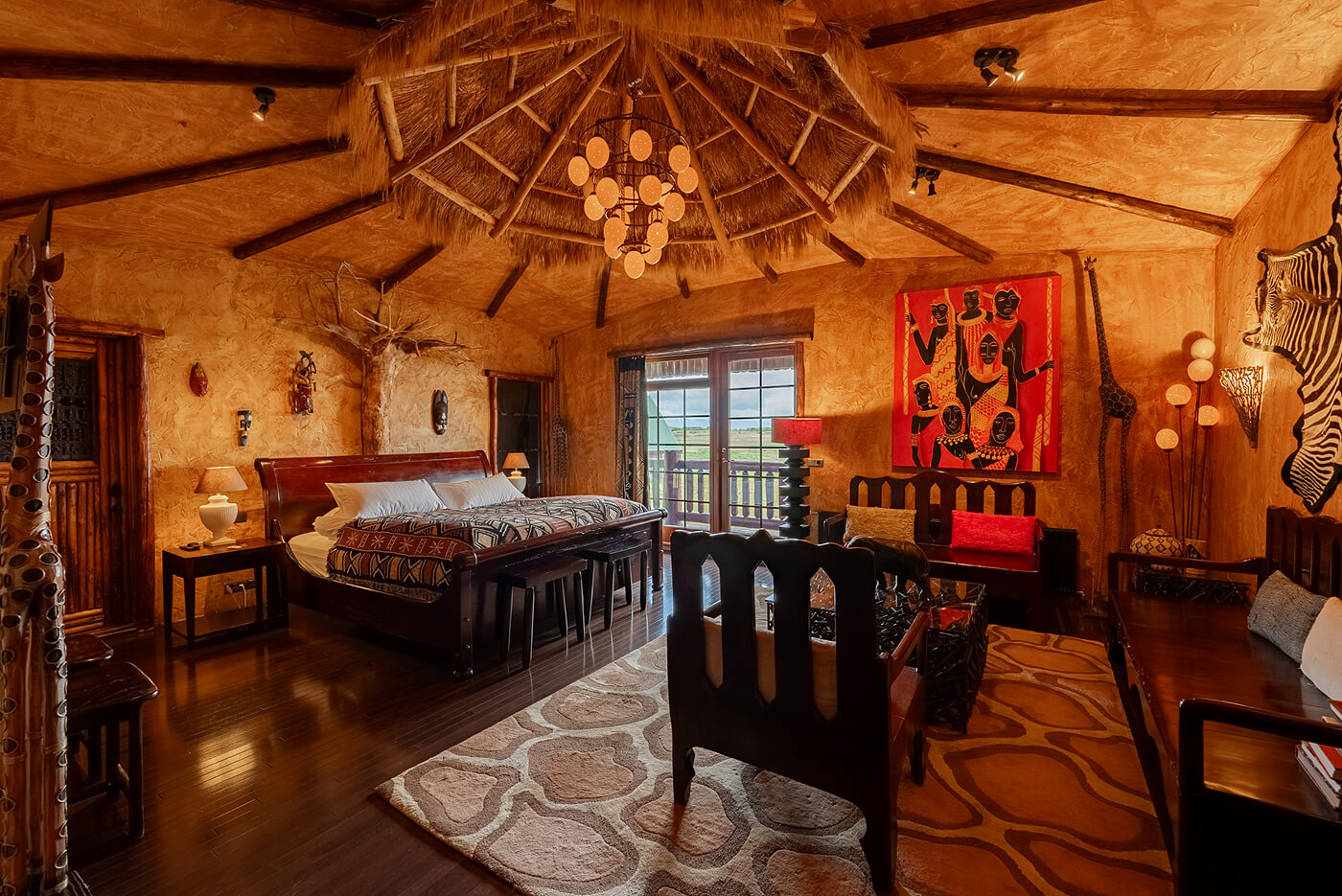 Отель построен из бревен в традиционном стиле: гостиные отделаны деревом, а за окнами разворачивается величественный и суровый исландский пейзаж. Каждый из сьютов посвящен отдельному континенту и оформлен в соответствующем стиле: африканский напомнит о «Тарзане», азиатский — о «Сёгуне».