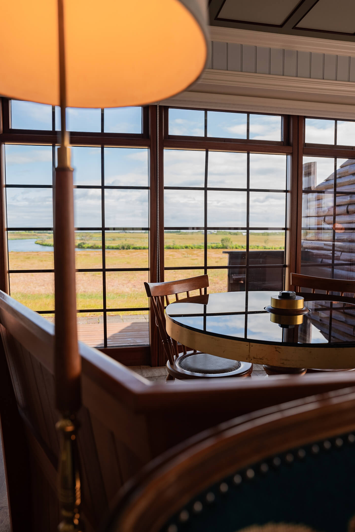 На территории всего один ресторан, но этого более чем достаточно: в изысканной атмосфере с панорамными окнами вам подадут блюда нордической кухни, приготовленные из местных продуктов. Наши фавориты — грибной суп и маскарпоне с шоколадом и черничным соусом. Утро можно начать со стопки рыбьего жира, а вечер закончить у барной стойки, изучая одну из лучших в Исландии коллекций виски и местного джина.