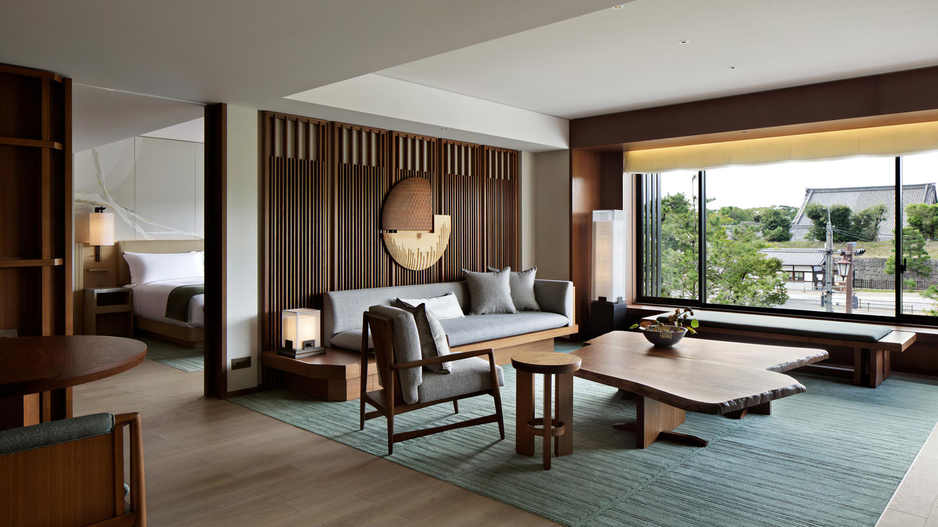 Просторный номер с видом на замок Нидзе. Доступен с двумя отдельными кроватями или одной размера king-size. Отдельная гостиная, к спальне примыкает гардеробная и ванная комната с двумя раковинами, душем и ванной. Диван-кровать можно использовать как дополнительное спальное место.