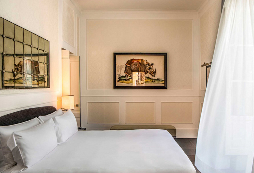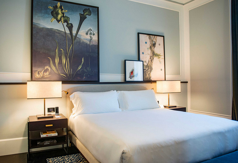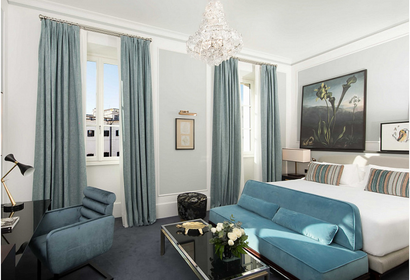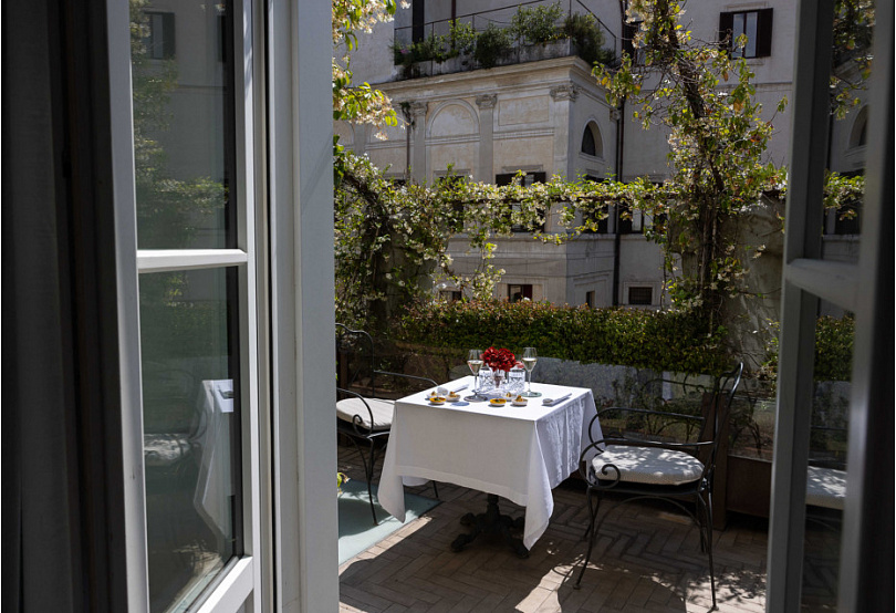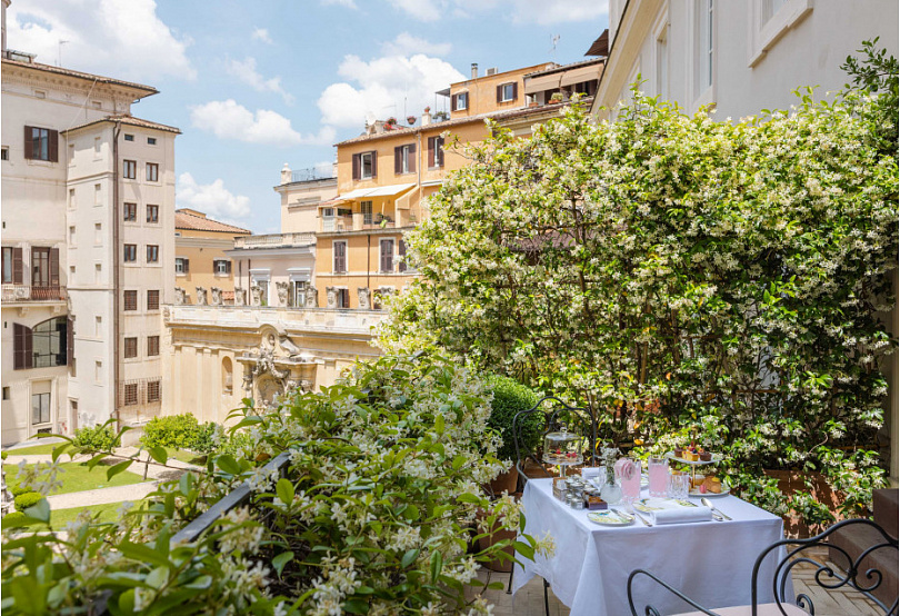 Несмотря на расположение в центре города, вид на палаццо Боргезе и близость к ключевым достопримечательностям, в отеле до сих пор почти монастырская тишина тишина: суета города кажется далекой, а зеленый внутренний двор и наполненные воздухом и светом комнаты создают ощущение уединения.
