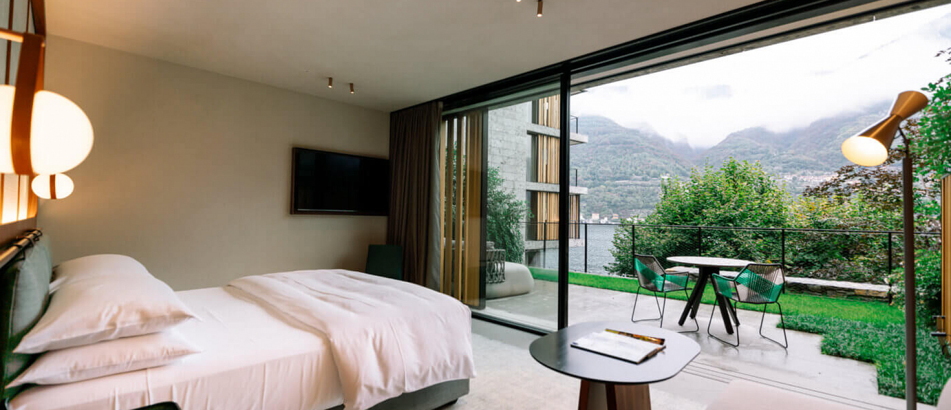 Просторный номер с собственным садом, зоной отдыха на открытом воздухе и видом на озеро. Кровать king-size.
