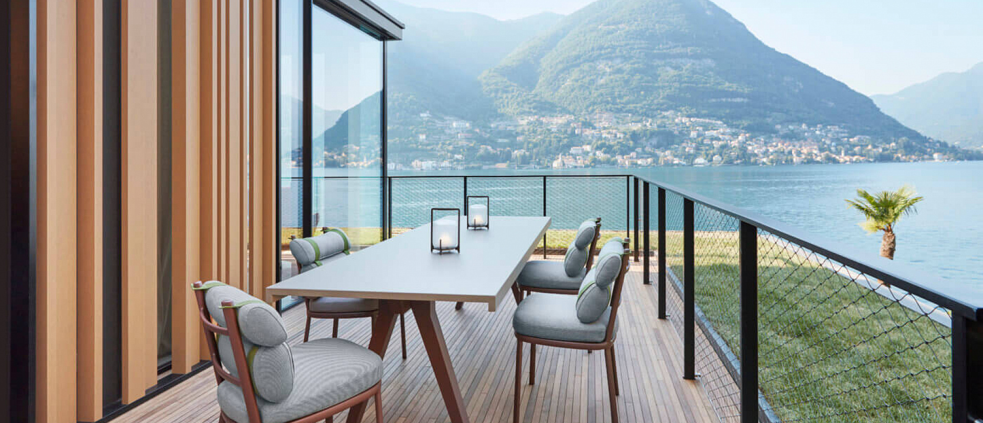 Номер на верхнем этаже отеля с видом на озеро и горы. Панорамные окна, гостиная с обеденной зоной, меблированная терраса и просторная гардеробная. Две раковины, ванна и душевая кабина в ванной комнате. Гостевой туалет. Кровать king-size.