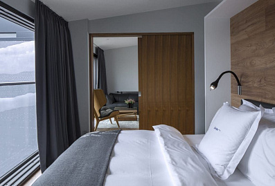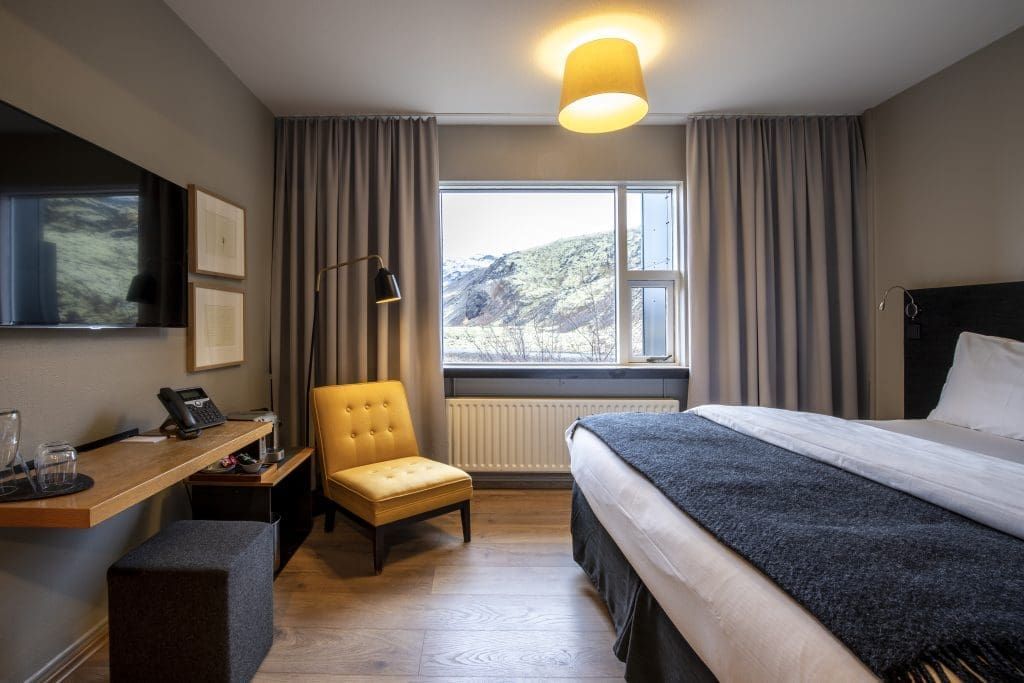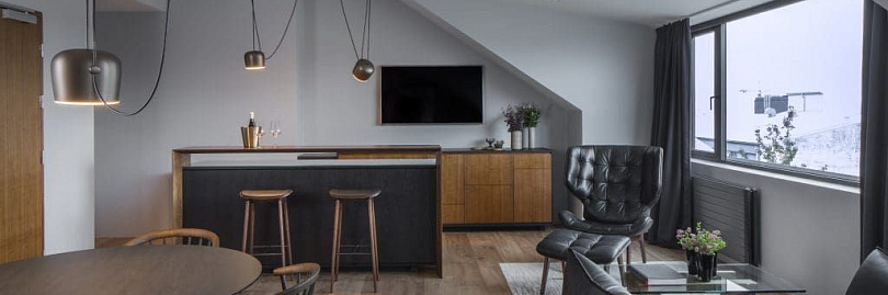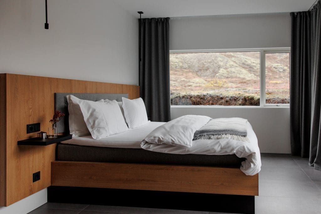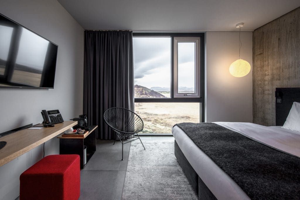 Более чем оправдывающий ожидания отель для тех, кто стремится увидеть инопланетные ландшафты Исландии. Даже в номерах все словно отражает пейзажи за окном — преимущественно монохром, бетонные стены и мебель из пород ценного дерева. В ресторане подают панскандинавскую кухню, уютная spa-зона помогает восстановиться после вылазок из отеля, а горячий открытый бассейн кажется лучшим местом для проведения вечеров.