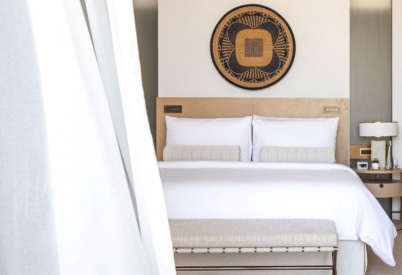 На входе кажется, что вы поднимаетесь на борт космического корабля — отель переносит в будущее своим полным света и воздуха дизайном и экологичной философией, которой не могут похвастаться другие курорты региона.