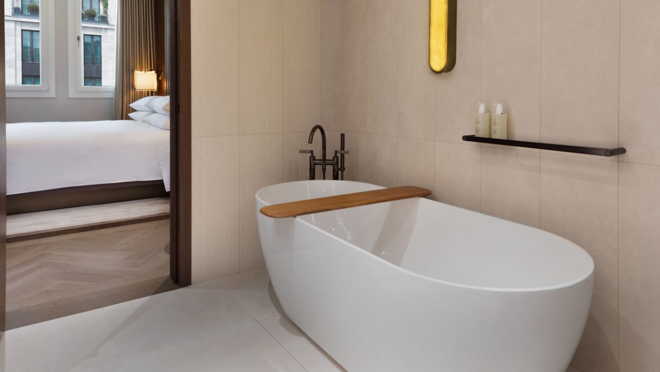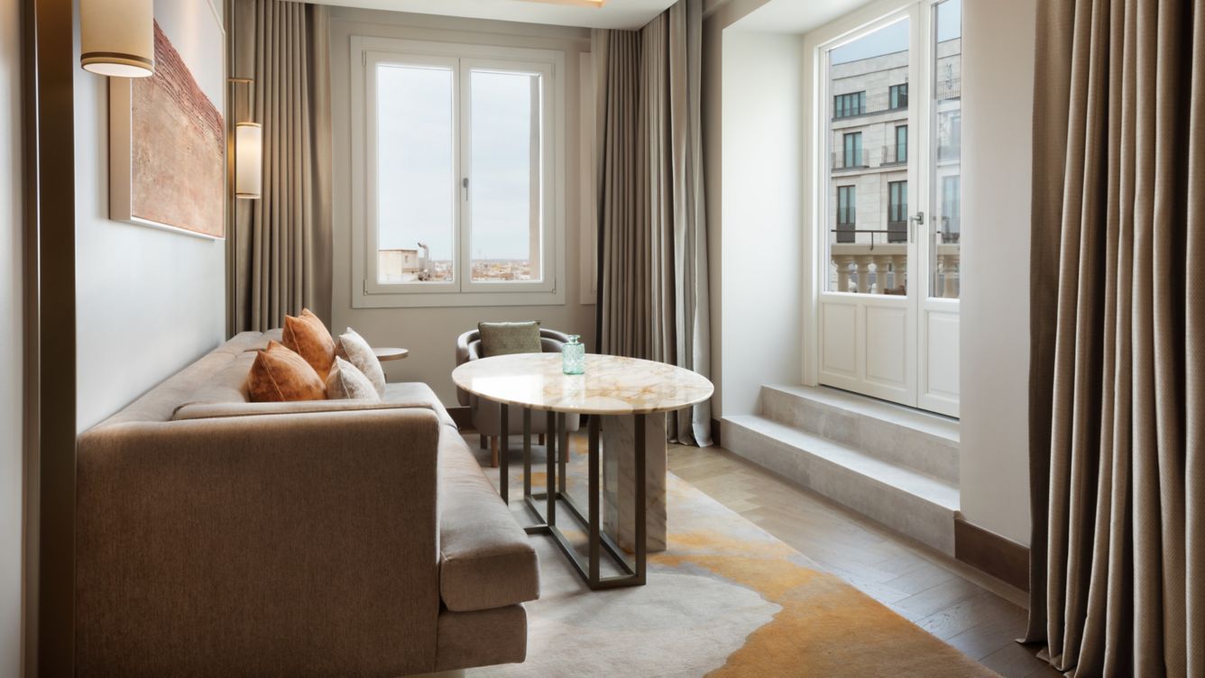 Просторный номер на верхнем этаже отеля с отдельной гостиной и обеденной зоной на восемь персон. Меблированная терраса с панорамными видами на город. Кровать king-size в спальне, гидромассажная ванна в ванной комнате. Некоторые номера этой категории можно объединить с соседними.
