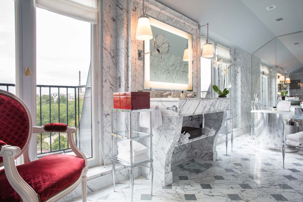 Номер с балконом и видом на Эйфелеву башню. Просторная гардеробная, собственный бар и винный погреб. Кровать размера king-size. Ванная комната с итальянским душем, ванной и двумя раковинами. Номер подходит для людей с ограниченными возможностями.