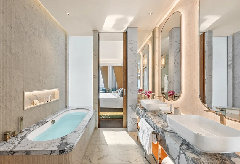 Акцент — на масштабе: два этажа spa-центра, 10 ресторанов и баров, партнерства с шефами мирового уровня и вертолетная площадка для тех, кто привык измерять расстояния не километрами, а минутами. Завершающий штрих — первые брендированные резиденции Mandarin Oriental в Дубае для тех, кто хочет продлить свой роман с городом.