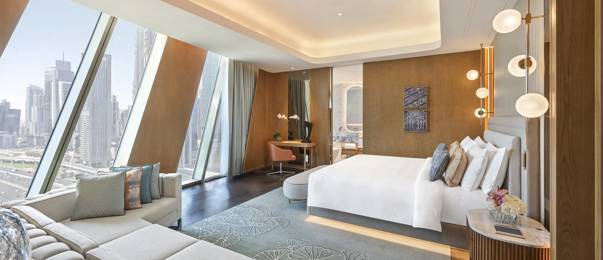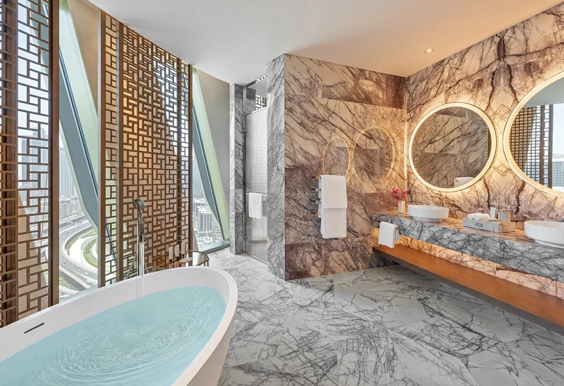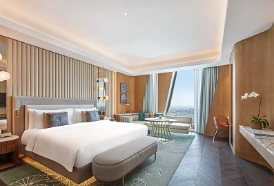 Внутри — 259 номеров и люксов с натуральными материалами в отделке и тишиной, которая так ценится в центре мегаполиса. Из панорамных окон открываются виды на Аравийский залив, Бурдж-Халифа и центр города.