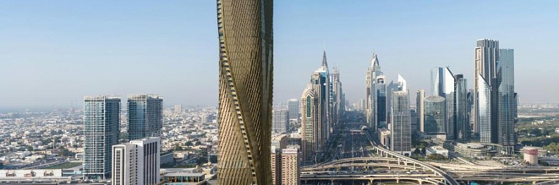 Легко узнаваемый скрученный силуэт Wasl Tower стал домом для второй резиденции бренда Mandarin Oriental в Дубае.