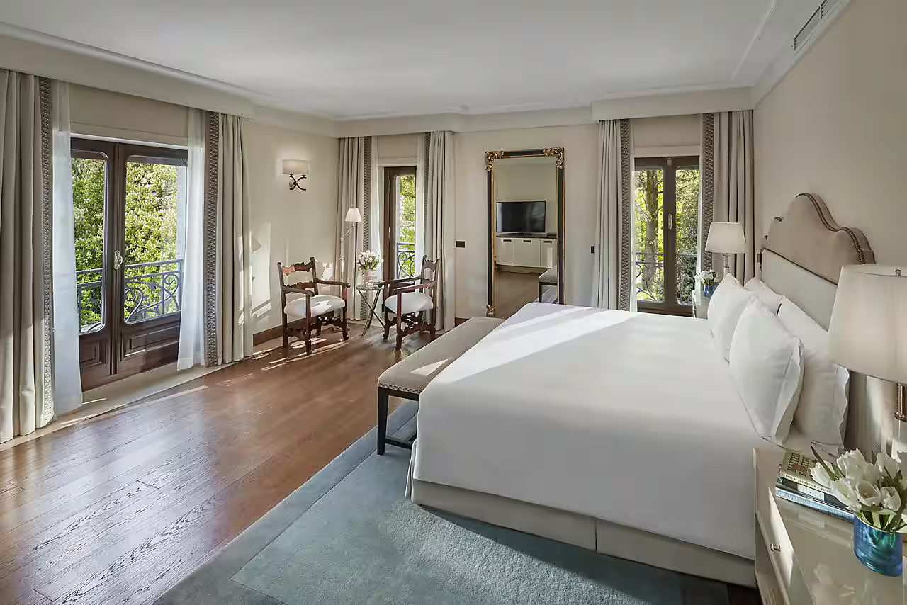 Просторный номер с видом на сад и отдельной гостиной. Доступен с двумя отдельными кроватями или одной размера king-size. Отделанная мрамором ванная комната с ванной и душевой кабиной.