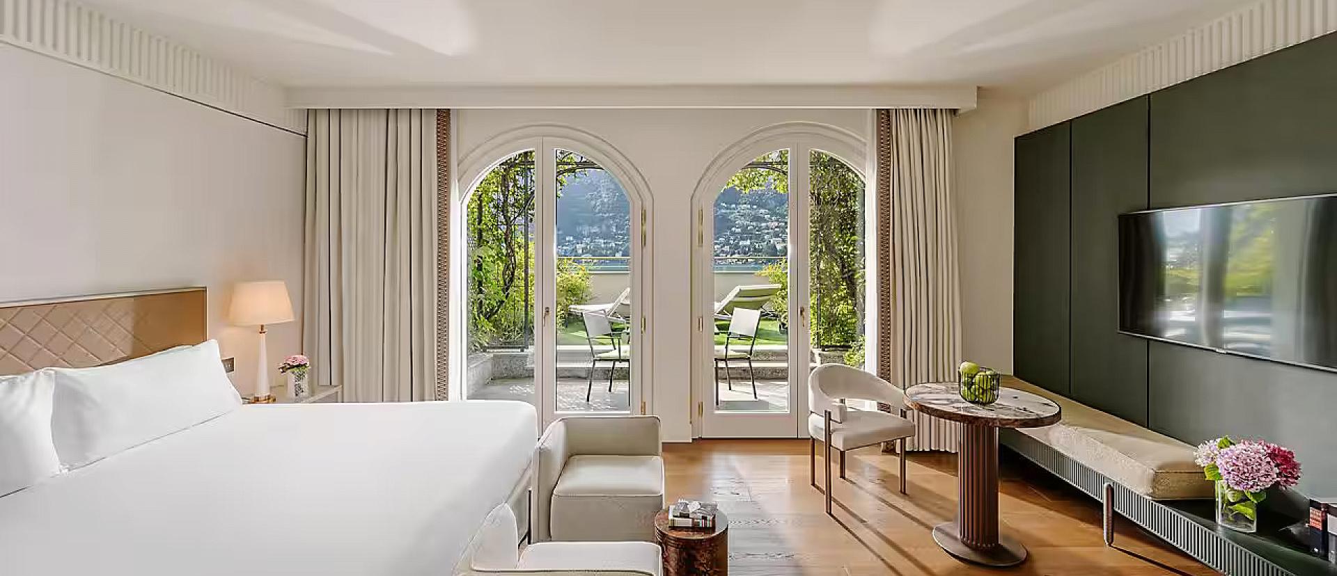 Номер с балконом или террасой и видом на озеро Комо. Доступен с двумя отдельными кроватями или одной размера king-size. Отделанная мрамором ванная комната с ванной и душевой кабиной. Можно объединить с соседним номером.