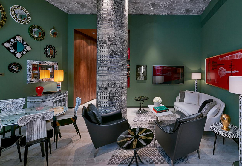 Он одинаково близок как к Ла Скала и Дуомо, так и к «Золотому квадрату» с его бутиками. В интерьерах — традиционный миланский дизайн с тонкими элементами азиатского стиля (например, дверные ручки в виде гонгов). Пастельные тона и камин в лобби создают атмосферу частной резиденции, а зеленые внутренние дворы дарят уединение от городской суеты.